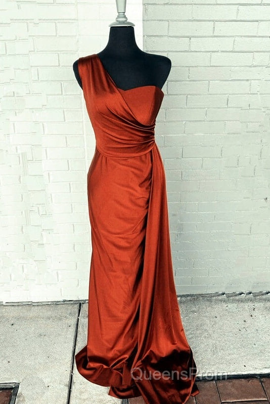 Burnt Orange Satin Bridesmaid Dress One Shoulder