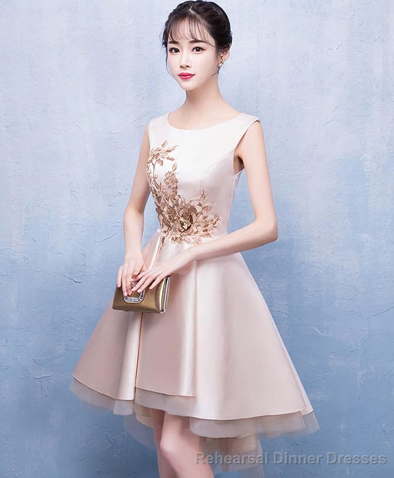 Champagne Satin Lace Short Prom Dress Champagne Homecoming Dress