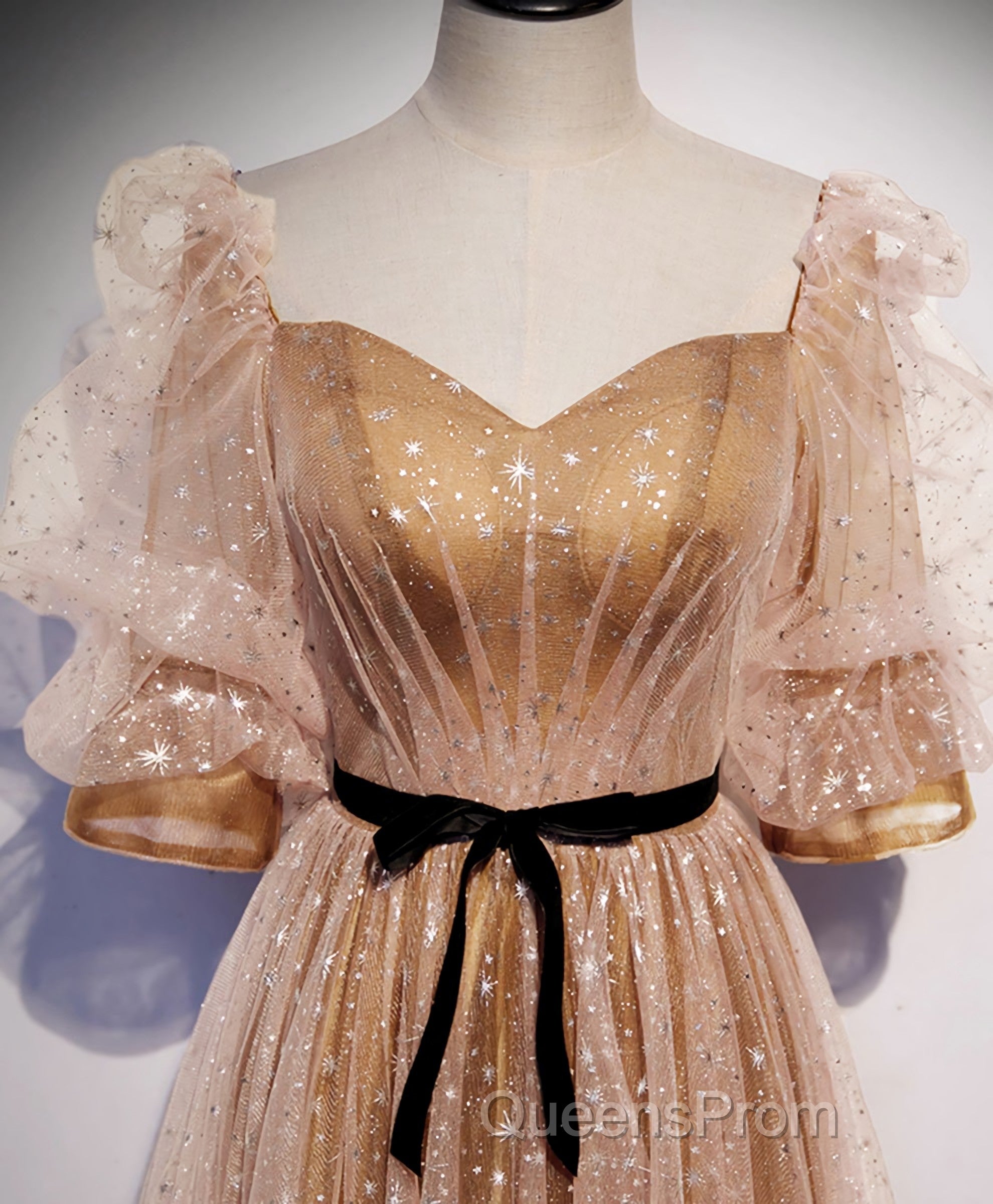 Champagne Sweetheart Tulle Long Evening Prom Dress, Tulle Formal Dress