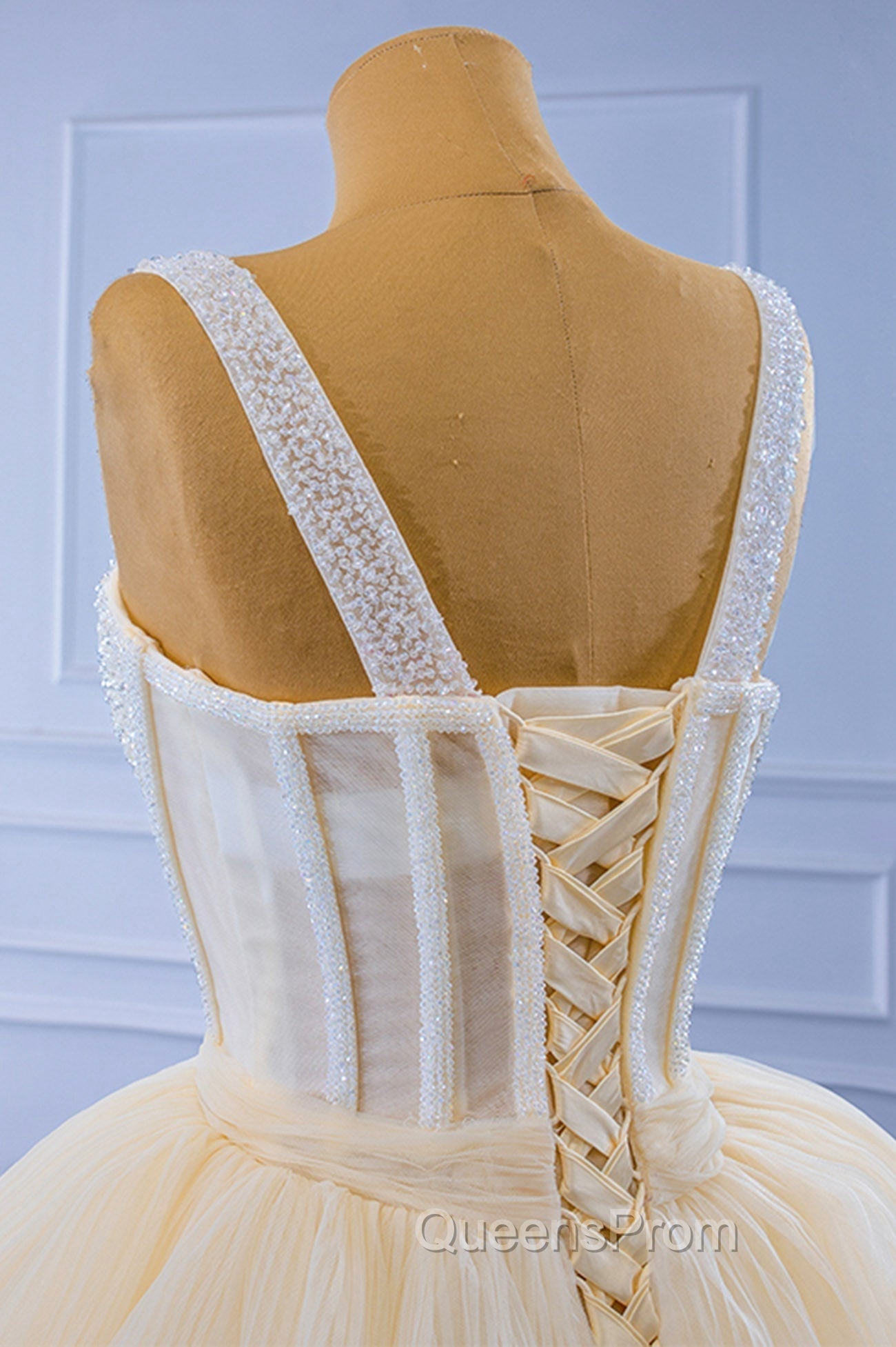 Champagne Tulle Short Evening Prom Dress with Beaded, A-Line Tea Length Party Dress