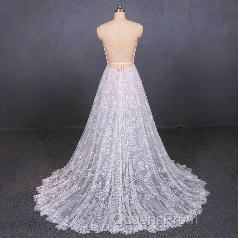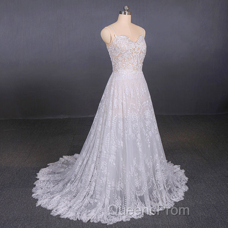 Charming Spaghetti Straps Long A-line Wedding Dress Beach Wedding Dress
