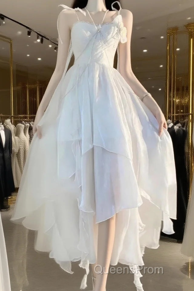 Chic A Line Spaghetti Straps Chiffon White Ankle Length Birthday Dress Birthday Outfits