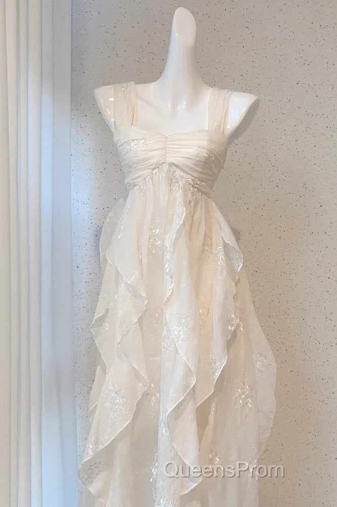Chic A Line Straps Floral White Ankle Length Birthday Dress Birthday Outfits