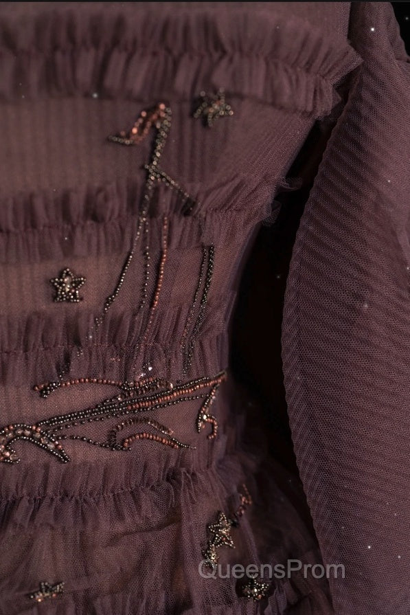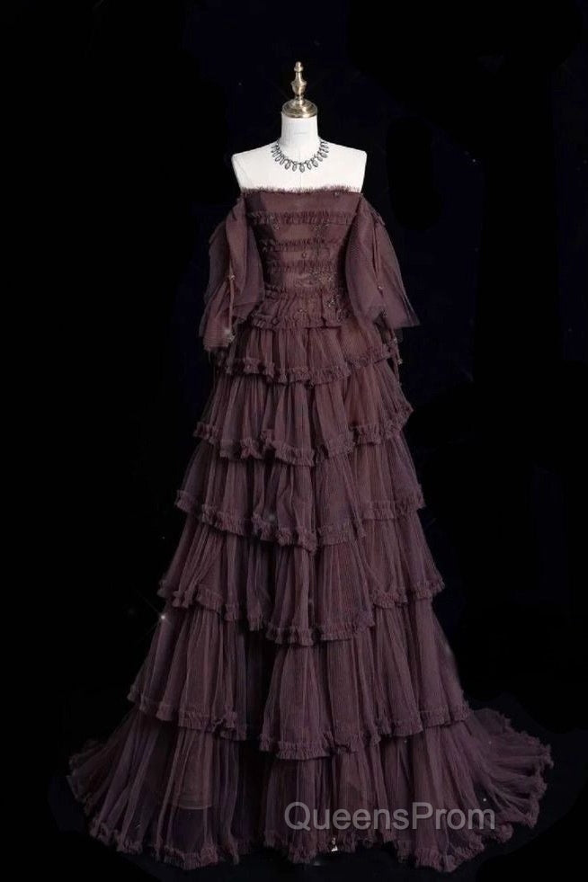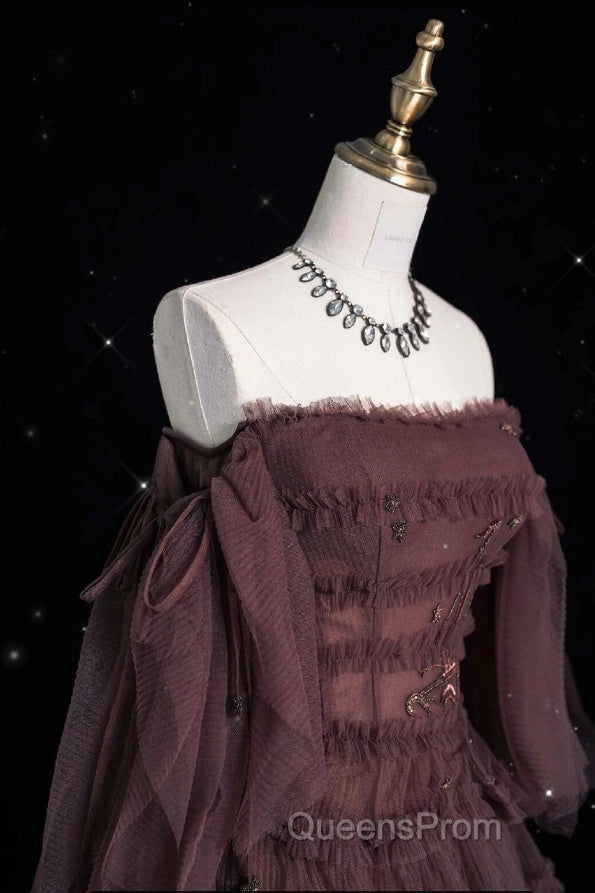 Chic Ball Gown Off The Shoulder Long Sleeves Evening Dress Tulle Long Evening Prom Dress