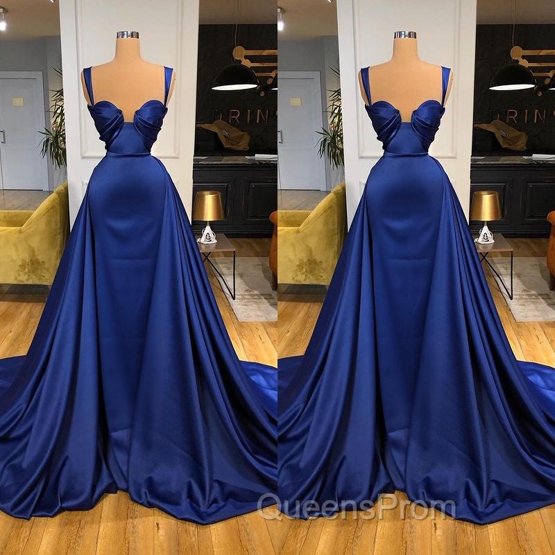Chic Royal Blue Straps Sweetheart Evening Prom Dress Overskirt Long