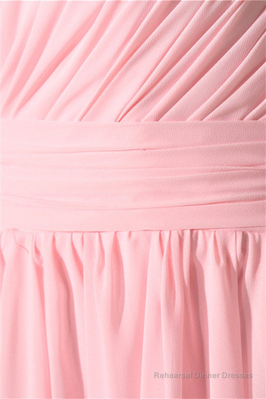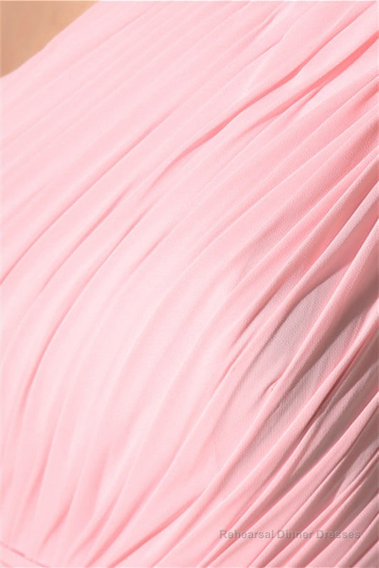 Chiffon Pink One Shoulder Long Bridesmaid Dresses