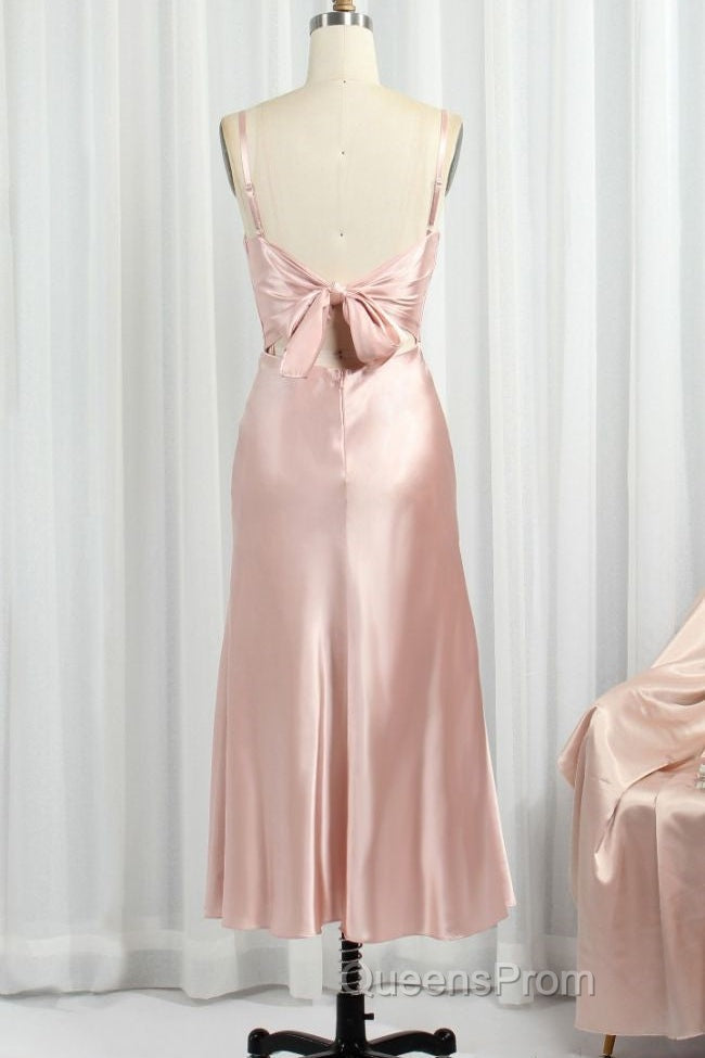 Classic Pink Spaghetti Straps Midi Party Dresss