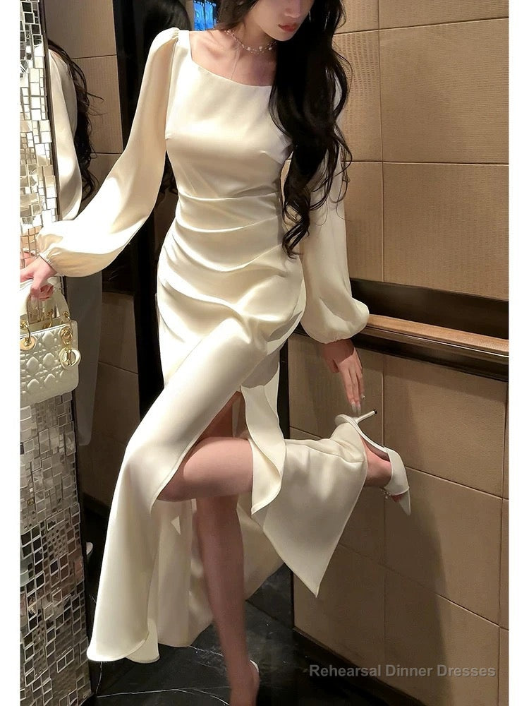 Classy Mermaid Square Neckline Long Sleeves Slit Prom Dresses Evening Gowns