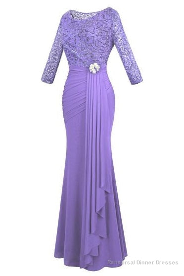 Crew Neck Lace Ruffles Lavender Mother of Bridal Dress