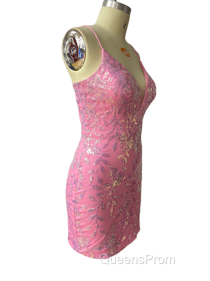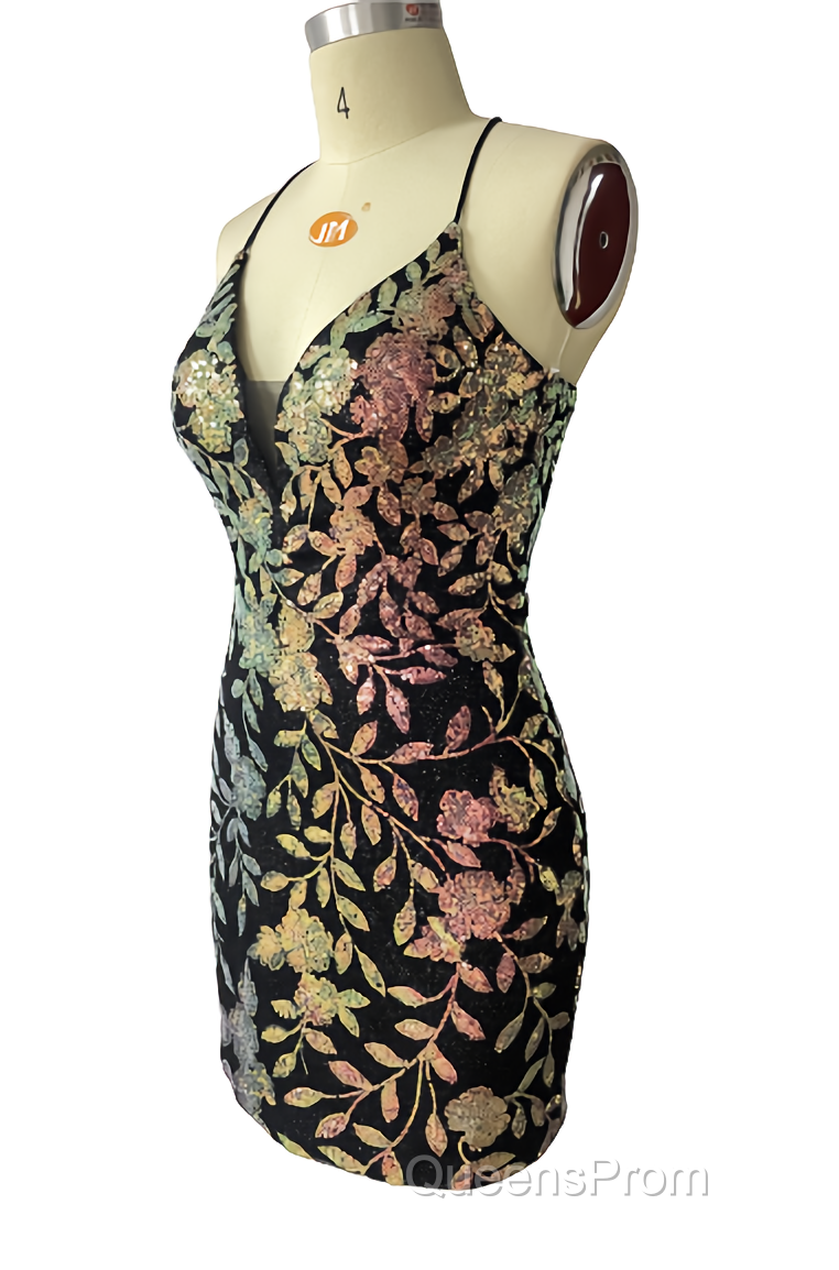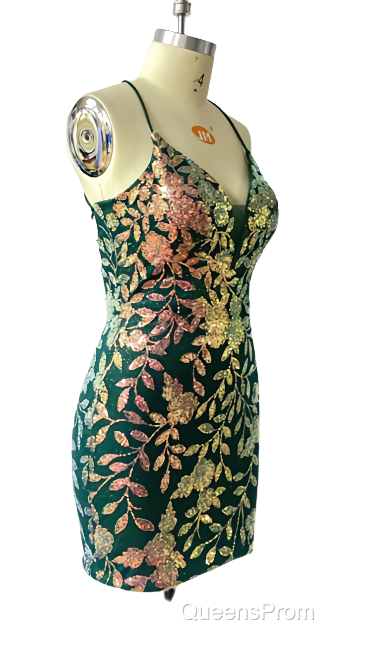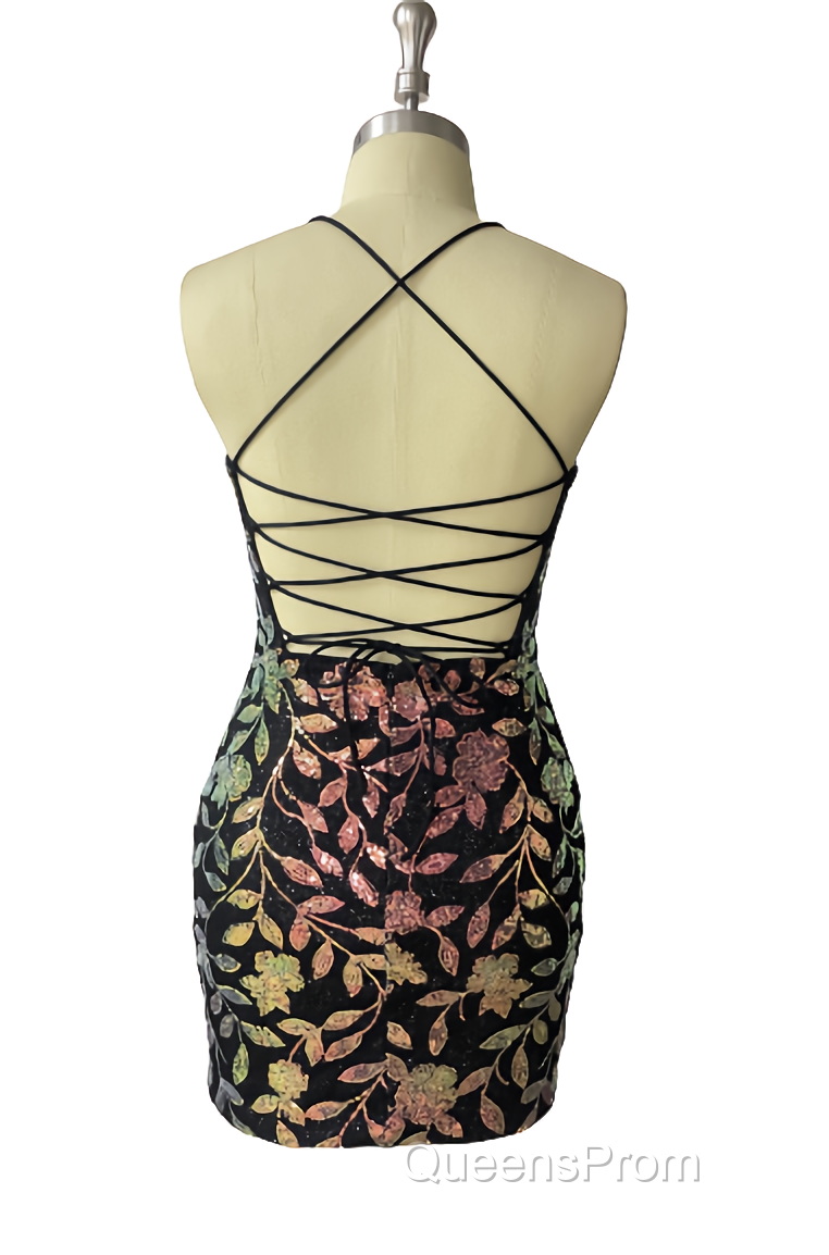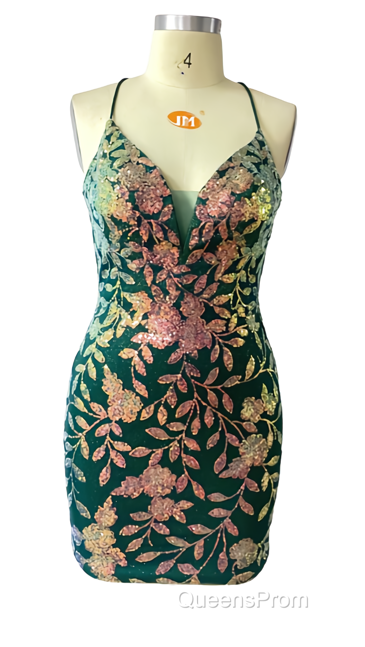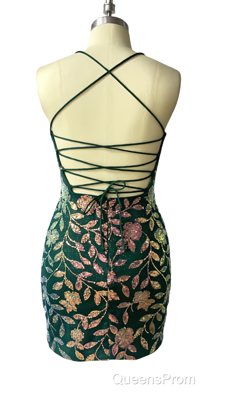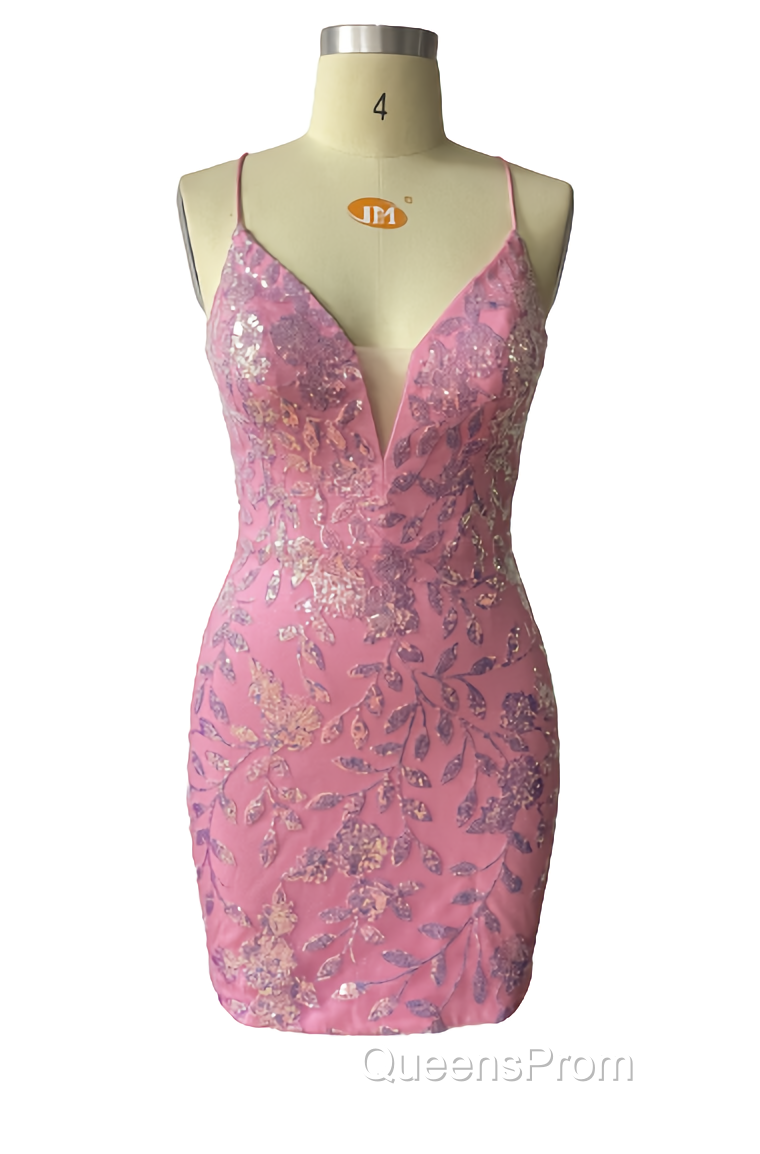 Cute Bodycon V Neck Blue Lace Homecoming Dress