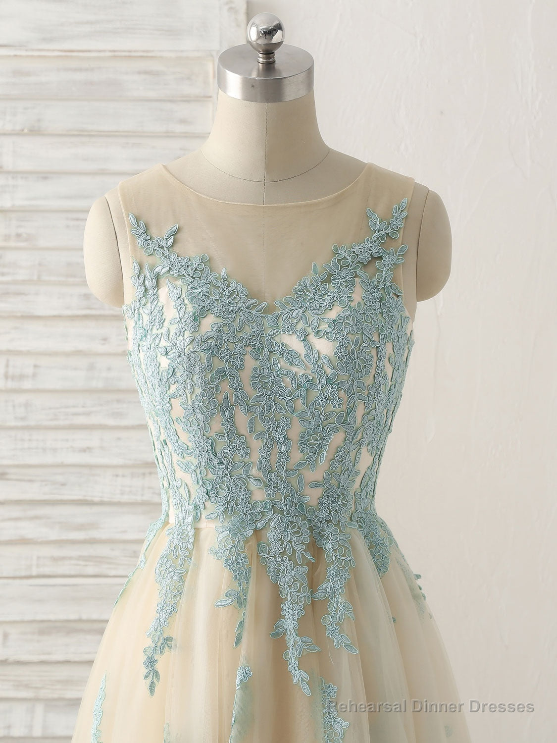 Cute Champagne Lace Long Prom Dress, A Line Tulle Bridesmaid Dress