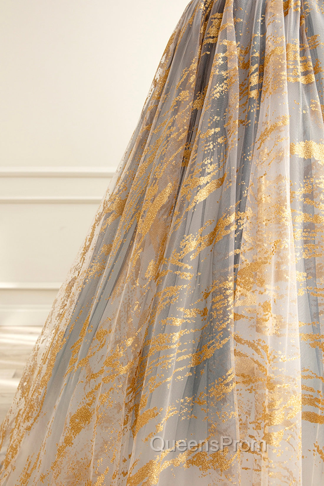 Cute Gradient Tulle Long Evening Dress, A-Line Strapless Evening Prom Dress Evening Dress