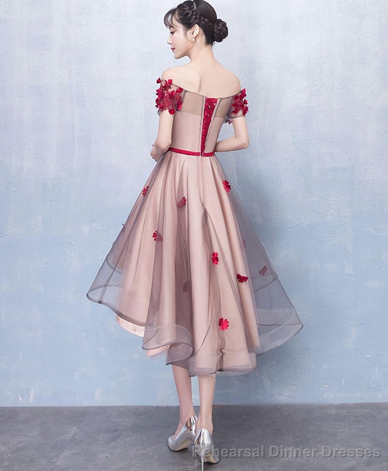 Cute Tulle Lace High Low Prom Dress Homecoming Dress 1