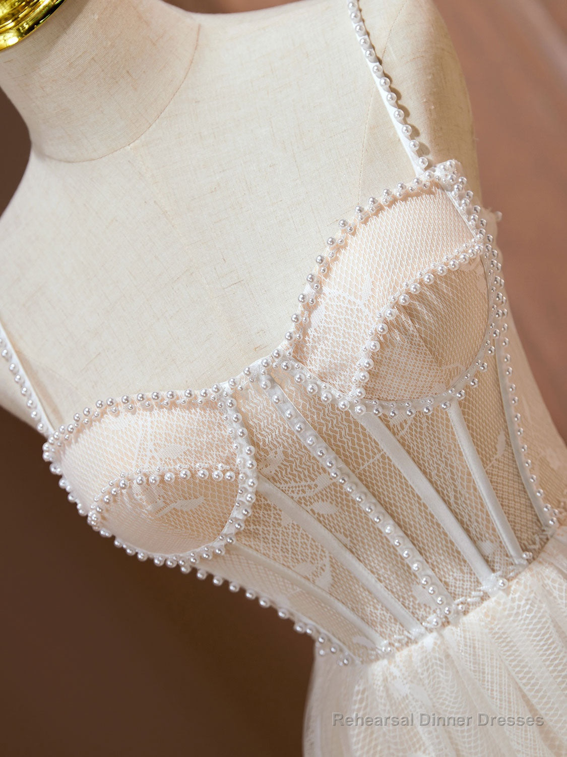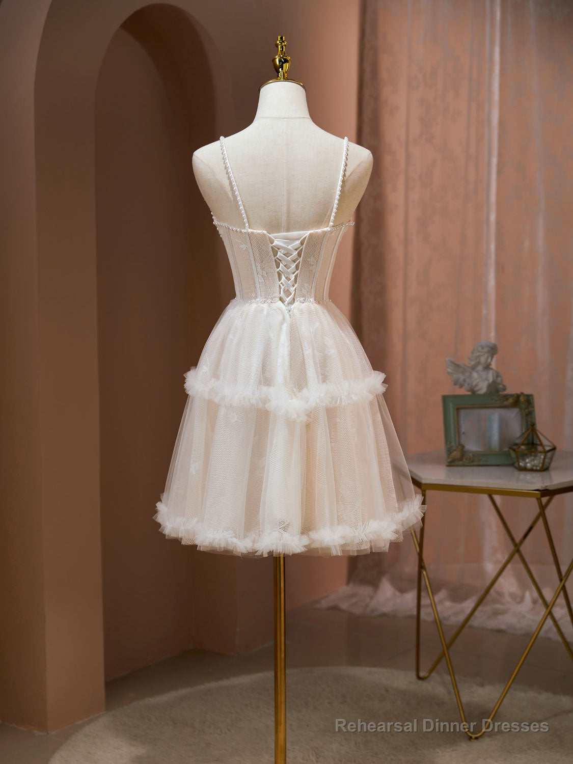 Cute Tulle Light Champagne Short Prom Dress, Lace Homecoming Dress