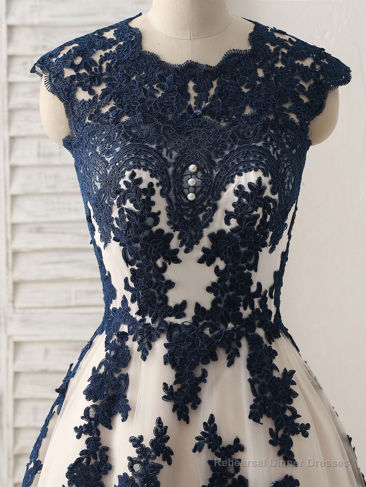 Dark Blue Lace Applique Tulle Long Prom Dress Blue Bridesmaid Dress