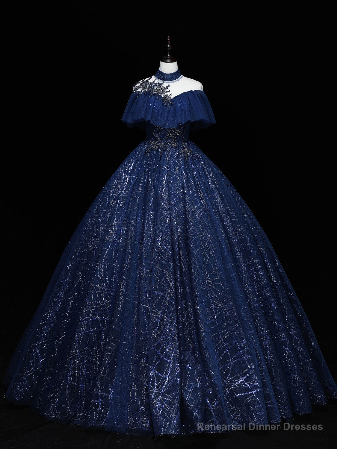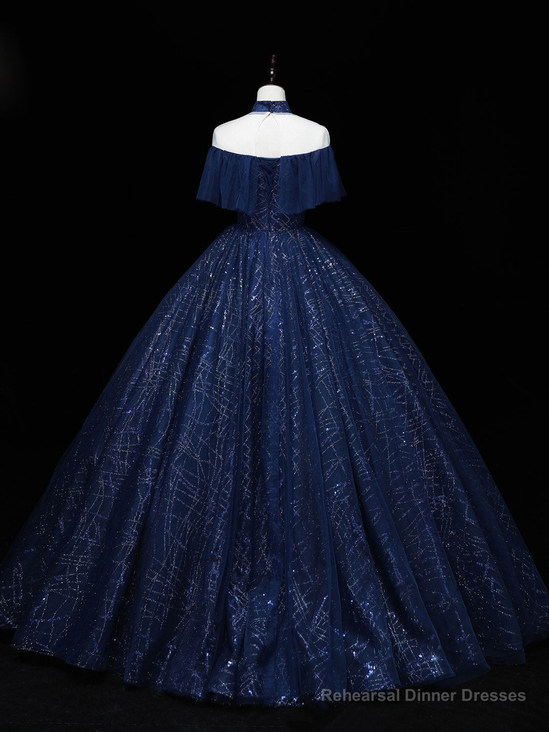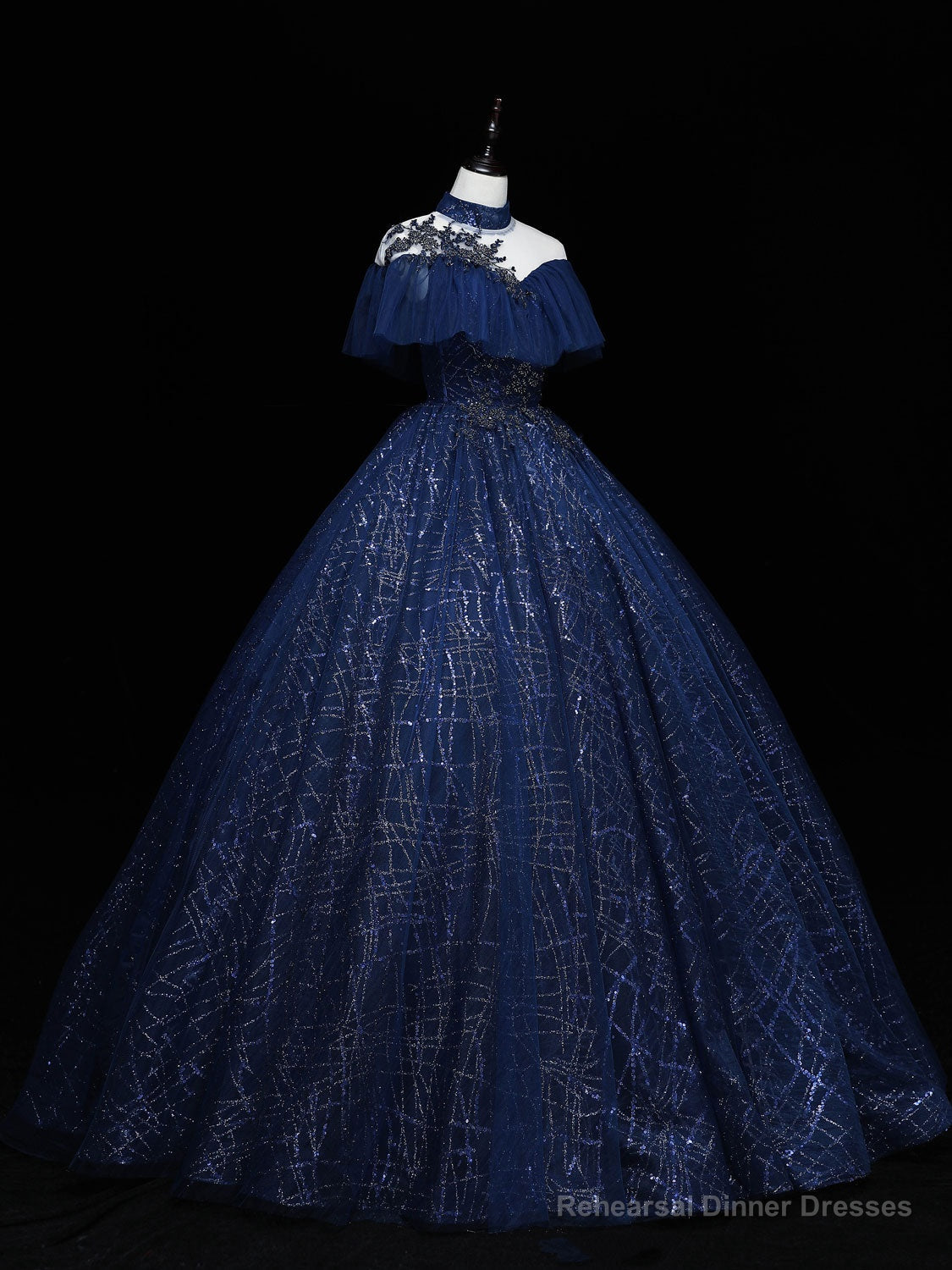 Dark Blue Long Prom Dress, Blue Tulle Formal Gown Graduation Dresses