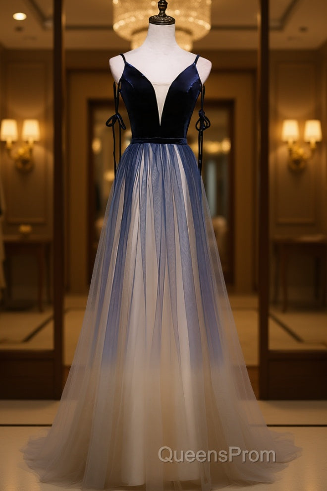 Dark blue tulle long Evening Prom Dress, blue evening Dress