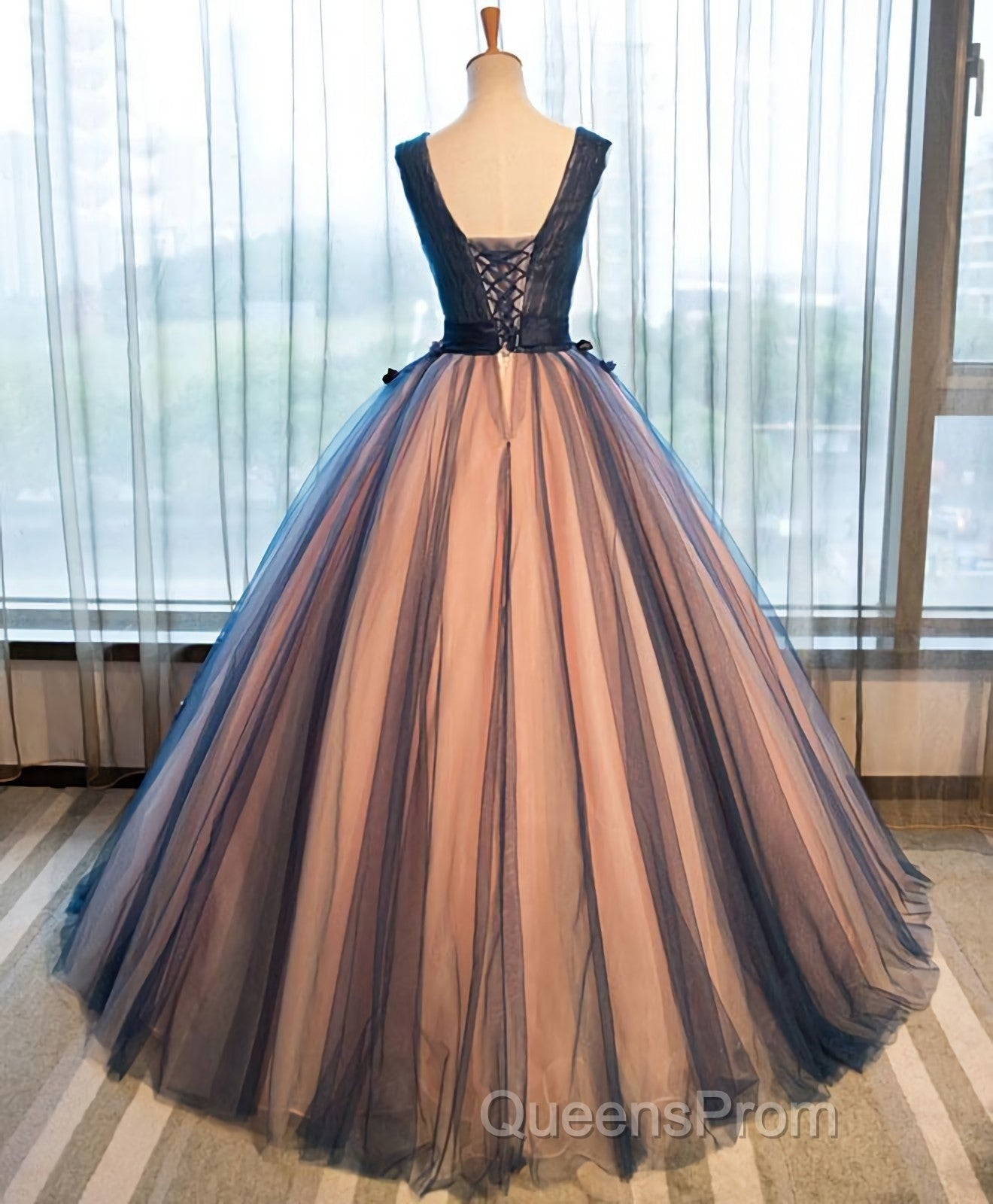 Dark Blue Tulle V Neck Long Evening Prom Gown Tulle Evening Gown