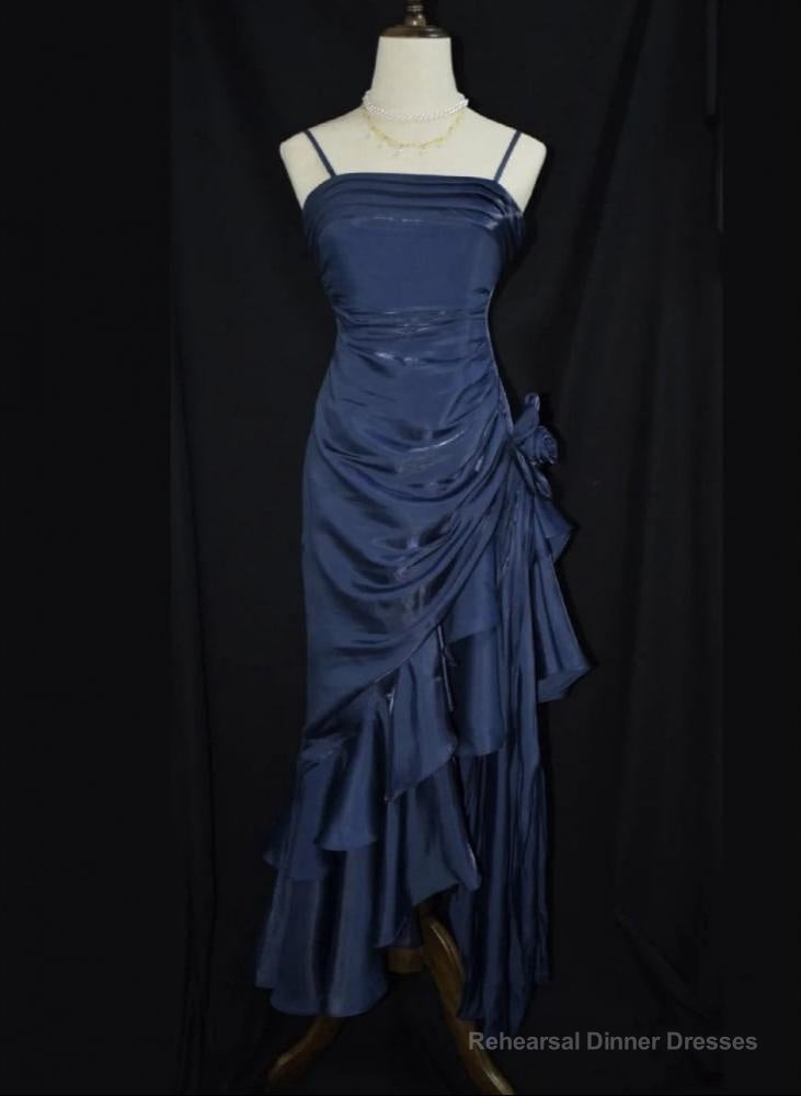 Dark Blue Vintage Floral Elegant Dress Asymmetrical Hem Prom Gown