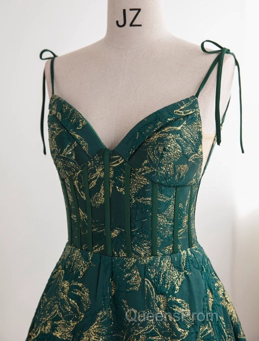 Dark Green A-Line Spaghetti Strap Satin Long Evening Prom Dress Sweetheart Neckline Retro Bridal Dress