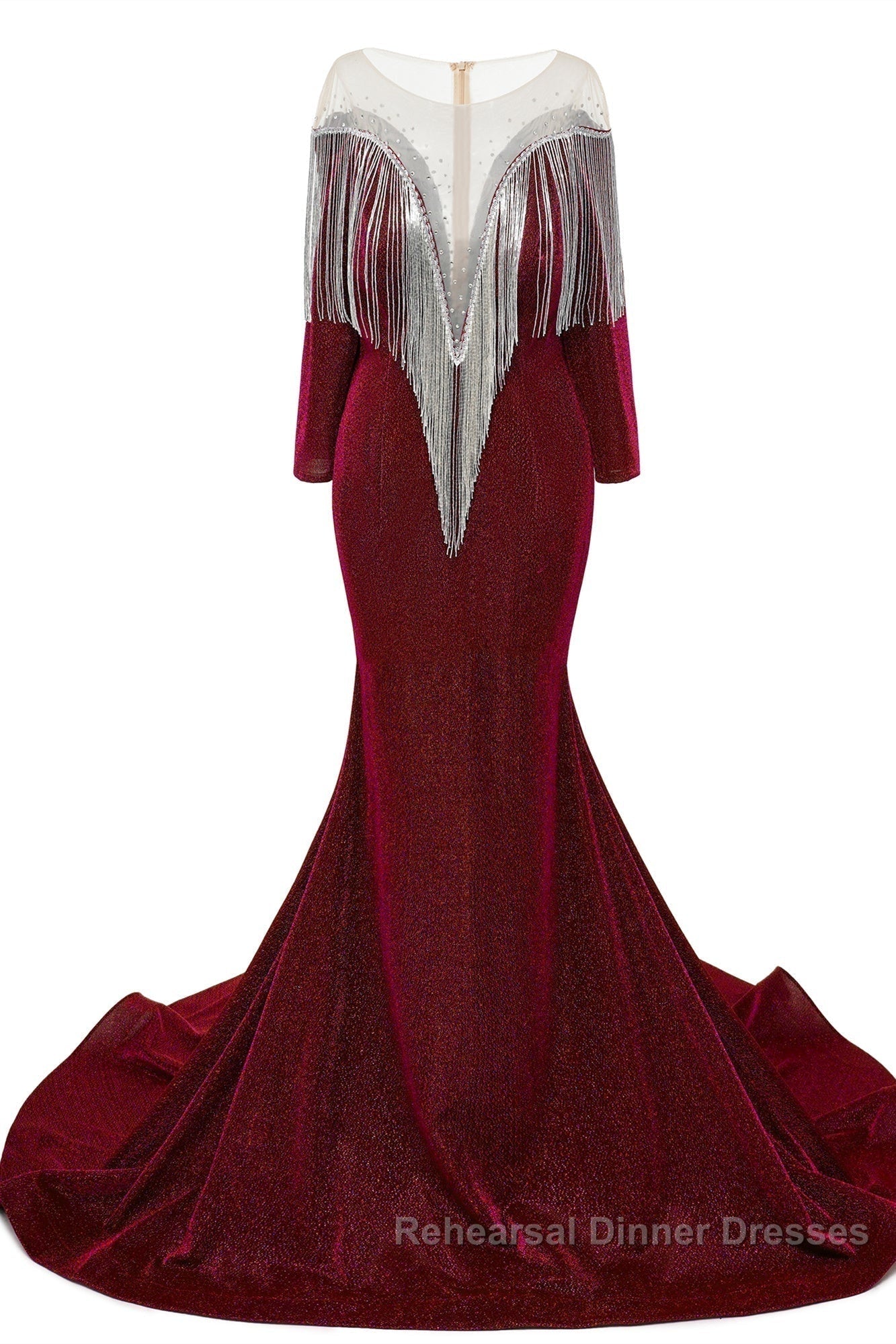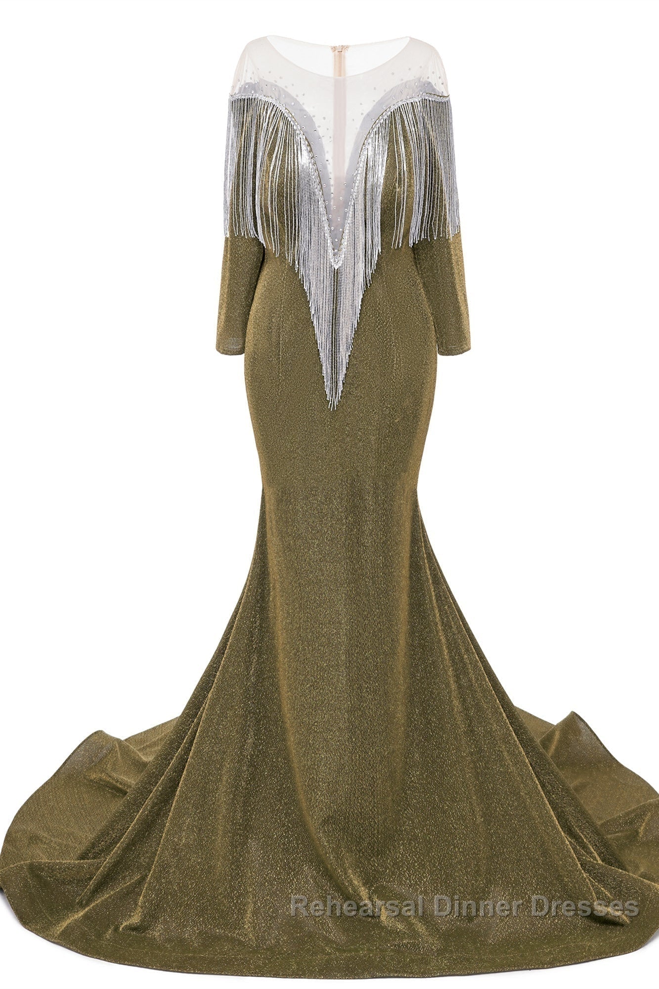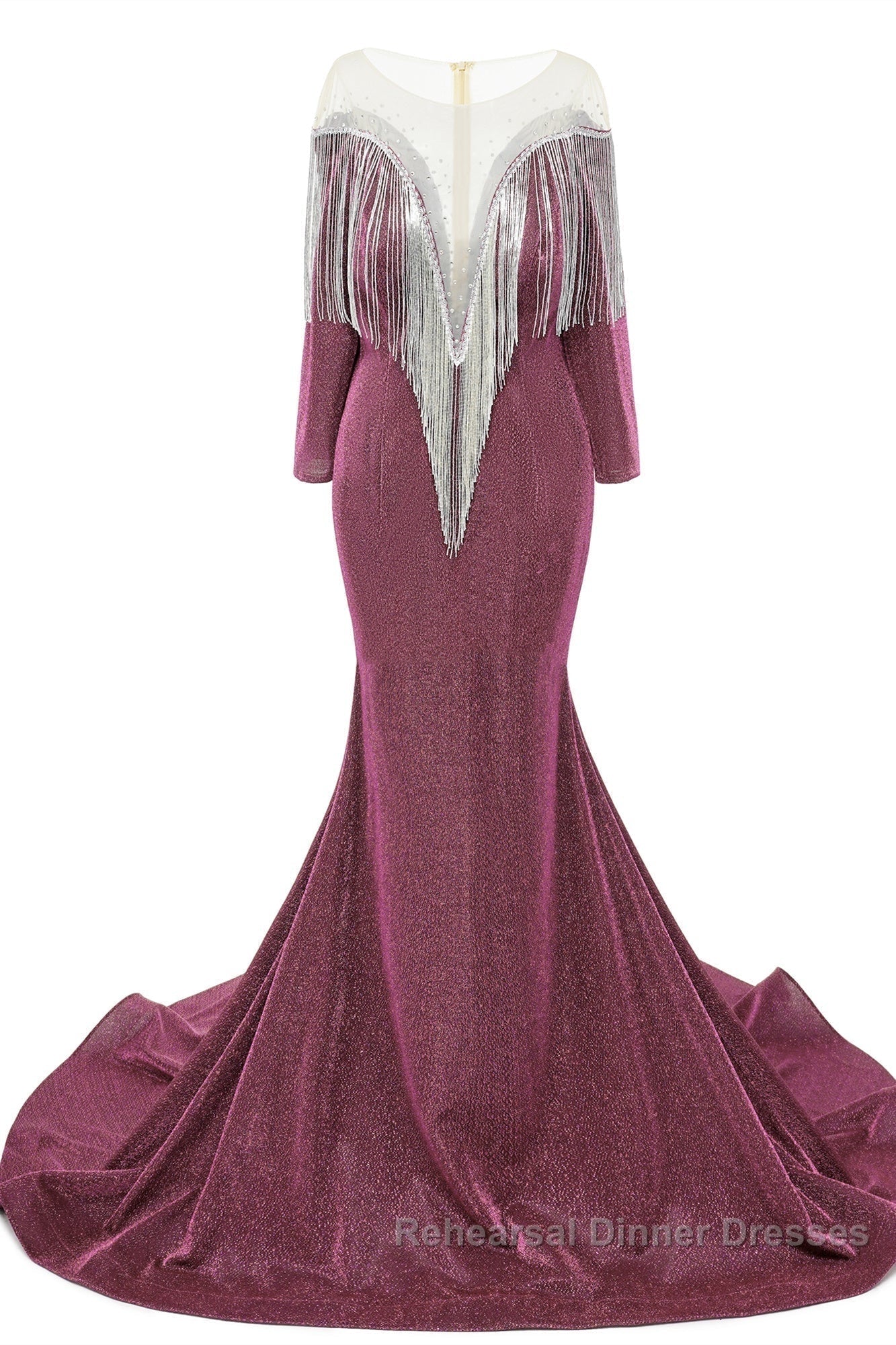 Deep V-neck Shiny Royal Blue Long sleeves Mermaid Semi Formal Prom Dresses