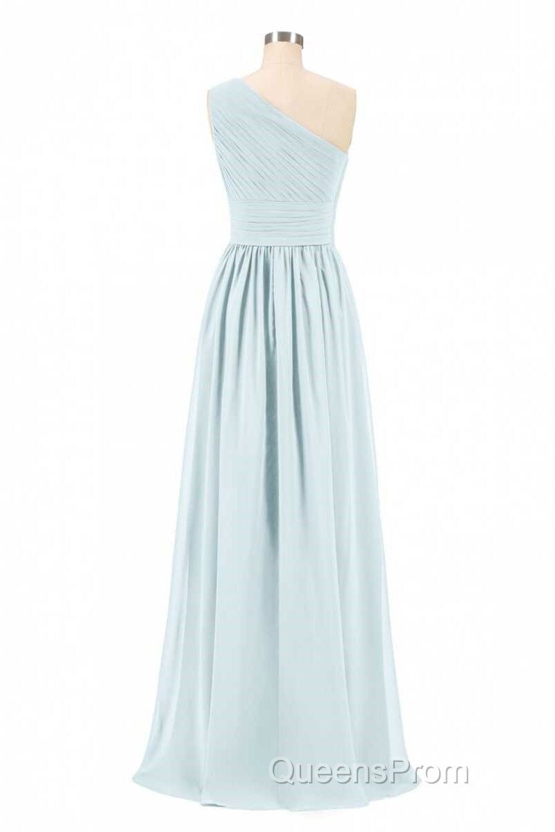 Dusty Blue Chiffon One-Shoulder Banded Waist Bridesmaid Dress