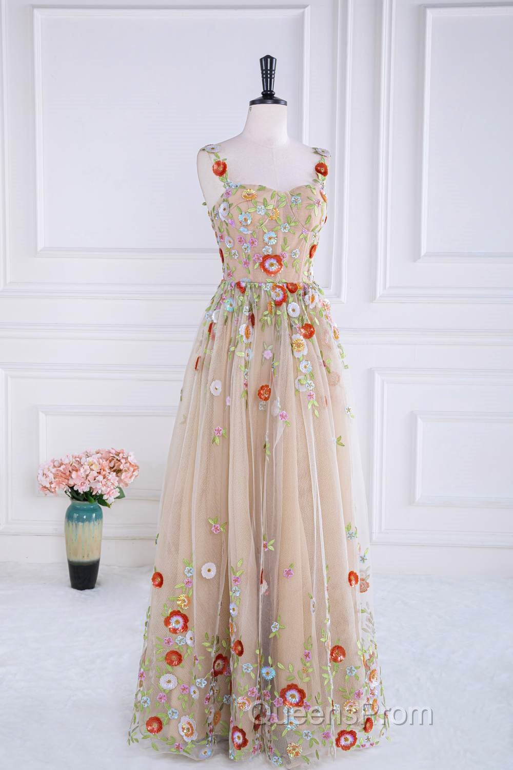 Dusty Pink Sequined Floral Appliques A-line Long Evening Prom Dress