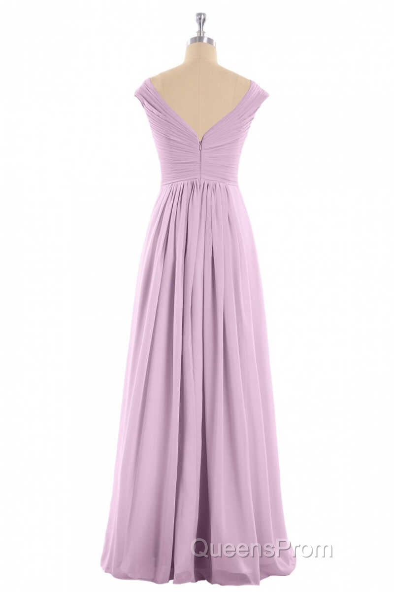 Dusty Purple Chiffon V-Neck Backless A-Line Long Bridesmaid Dress