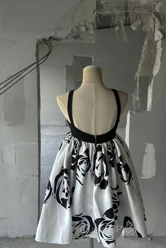 Elegant A-Line Flower Butterfly Black Short Homecoming Dress Online,
