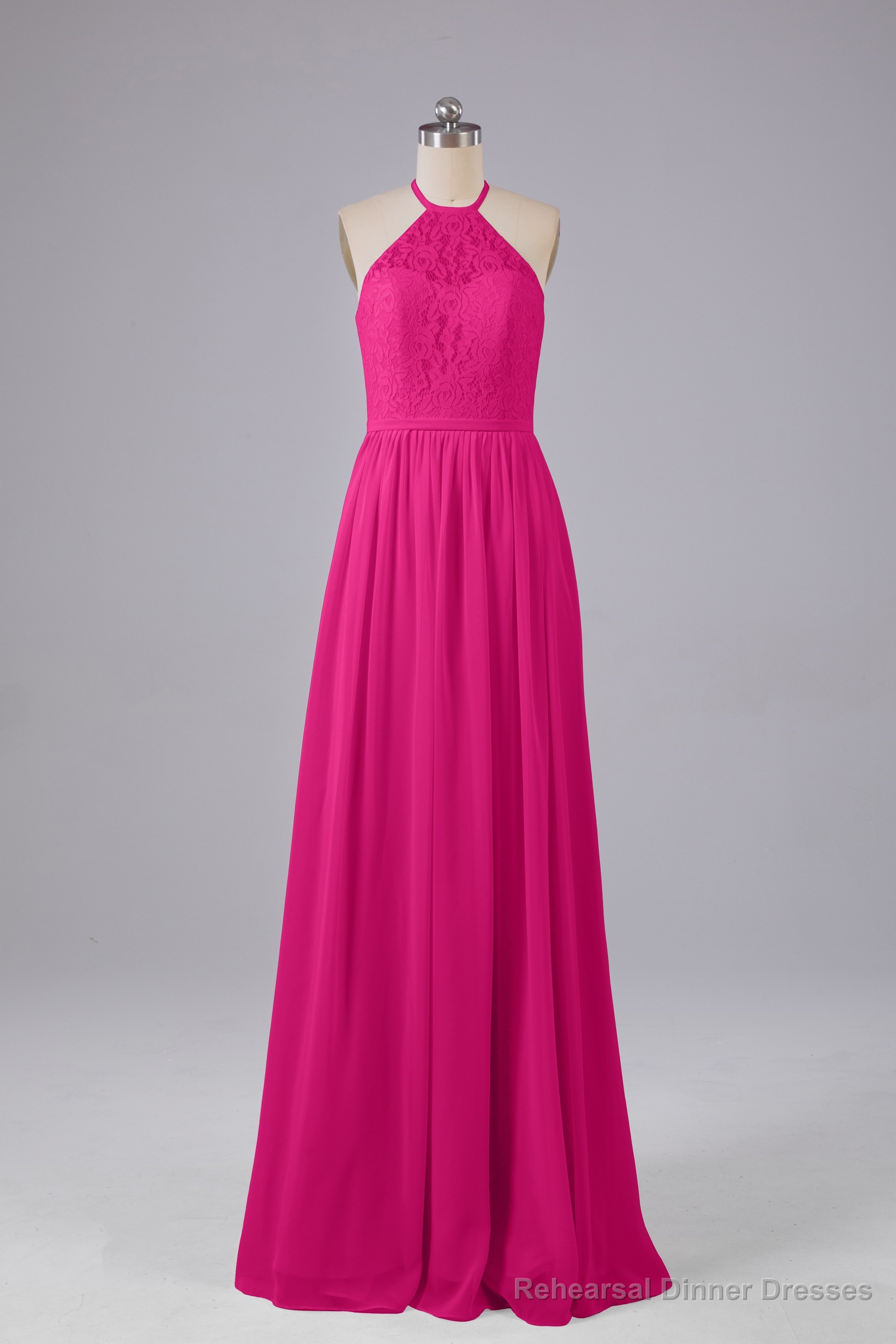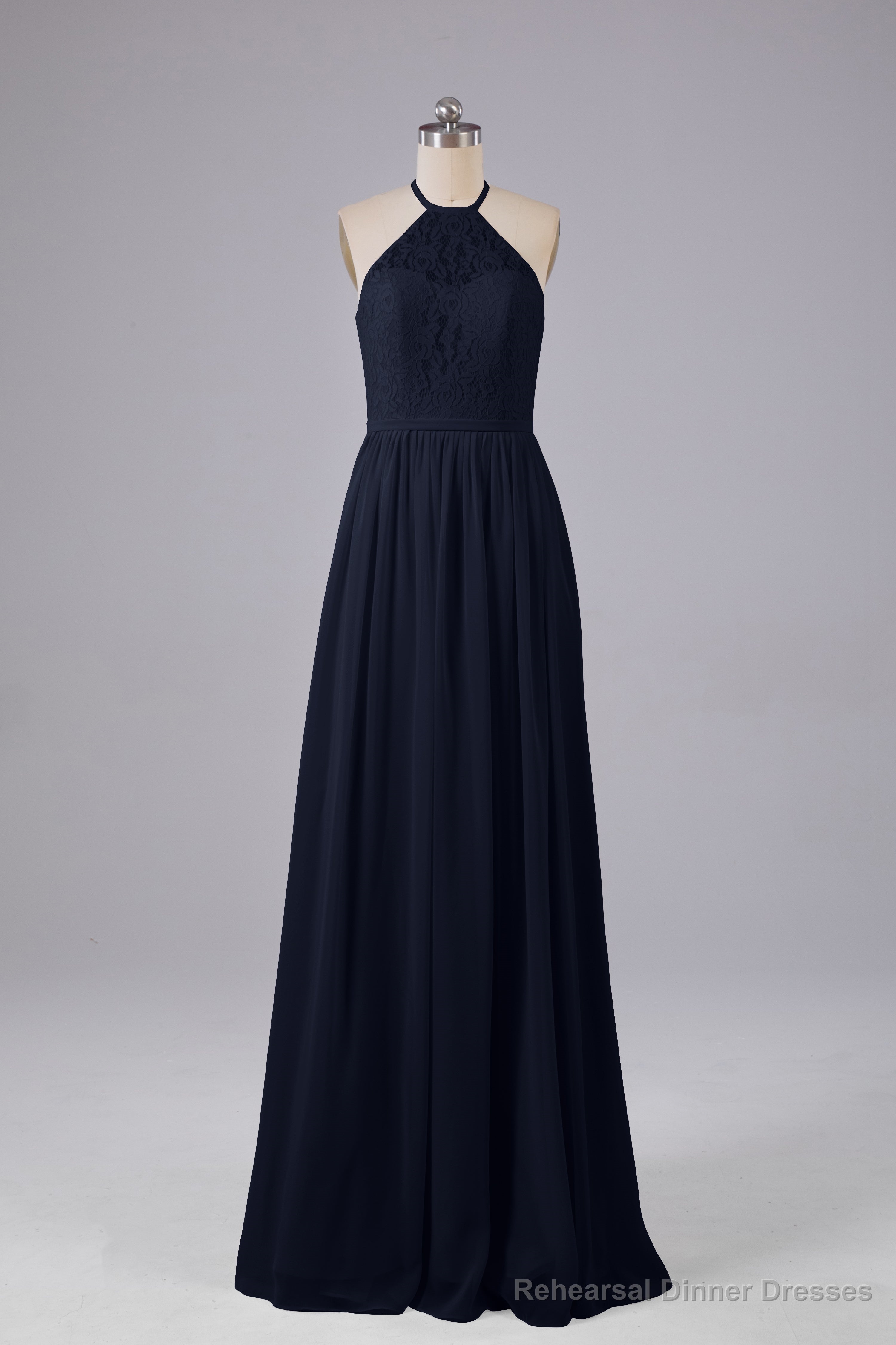 Elegant Keyhole Halter Lace Long Bridesmaid Dresses
