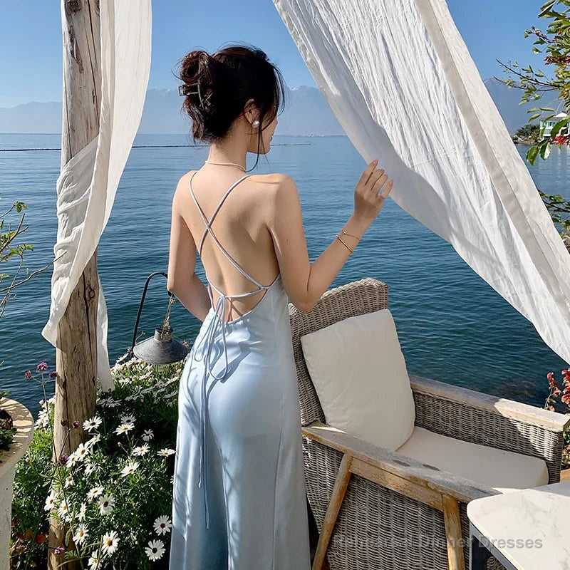 Elegant Sheath Spaghetti Strap Satin Long Prom Dress