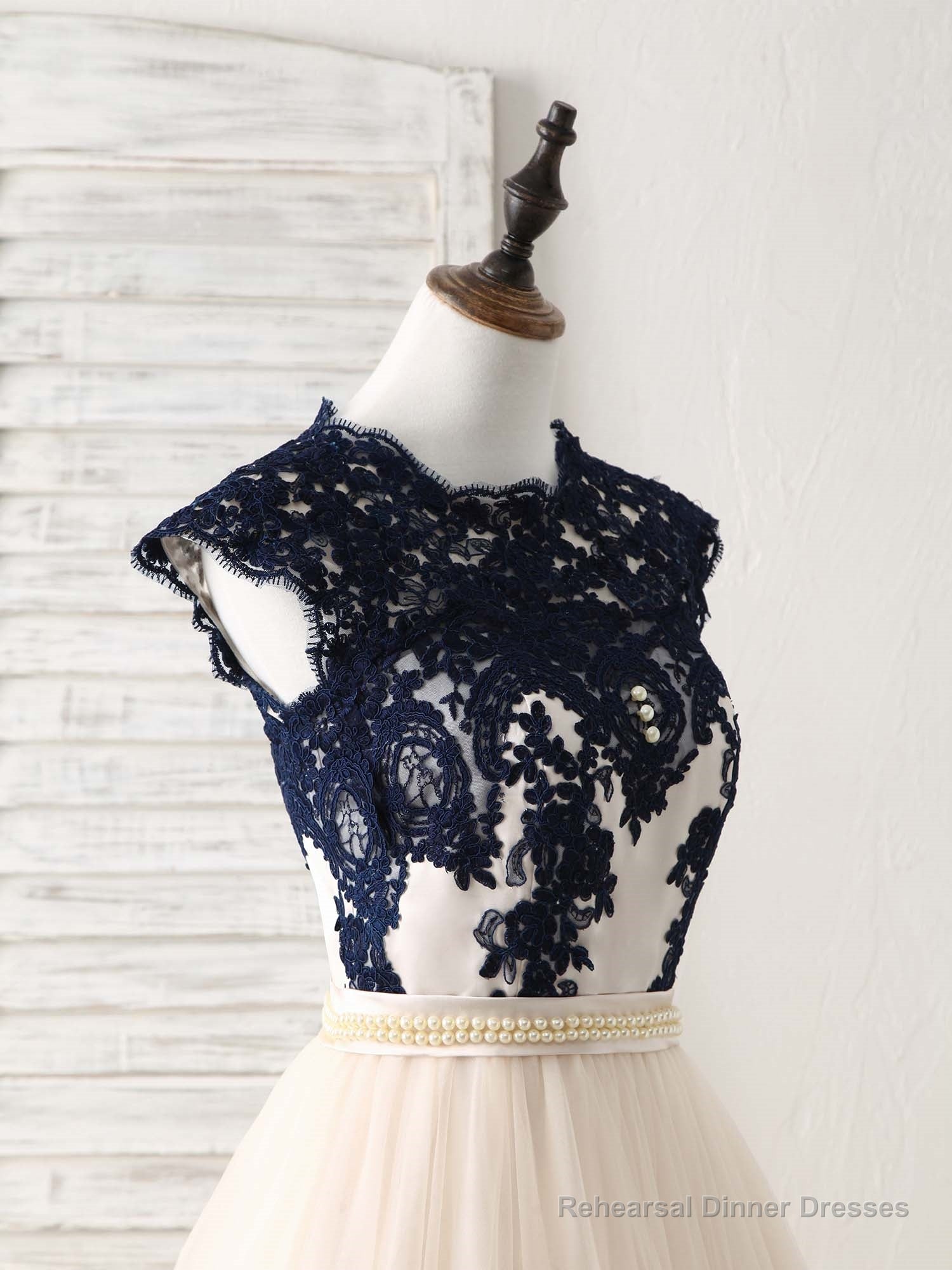 Elegant Tulle Lace Applique Long Prom Dress Tulle Evening Dress