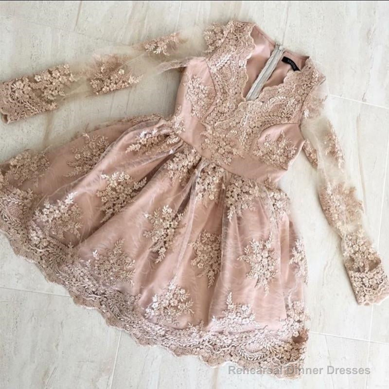 Elegant V Neck Long Sleeves Homecoming Dresses Lace Short Cocktail Dress