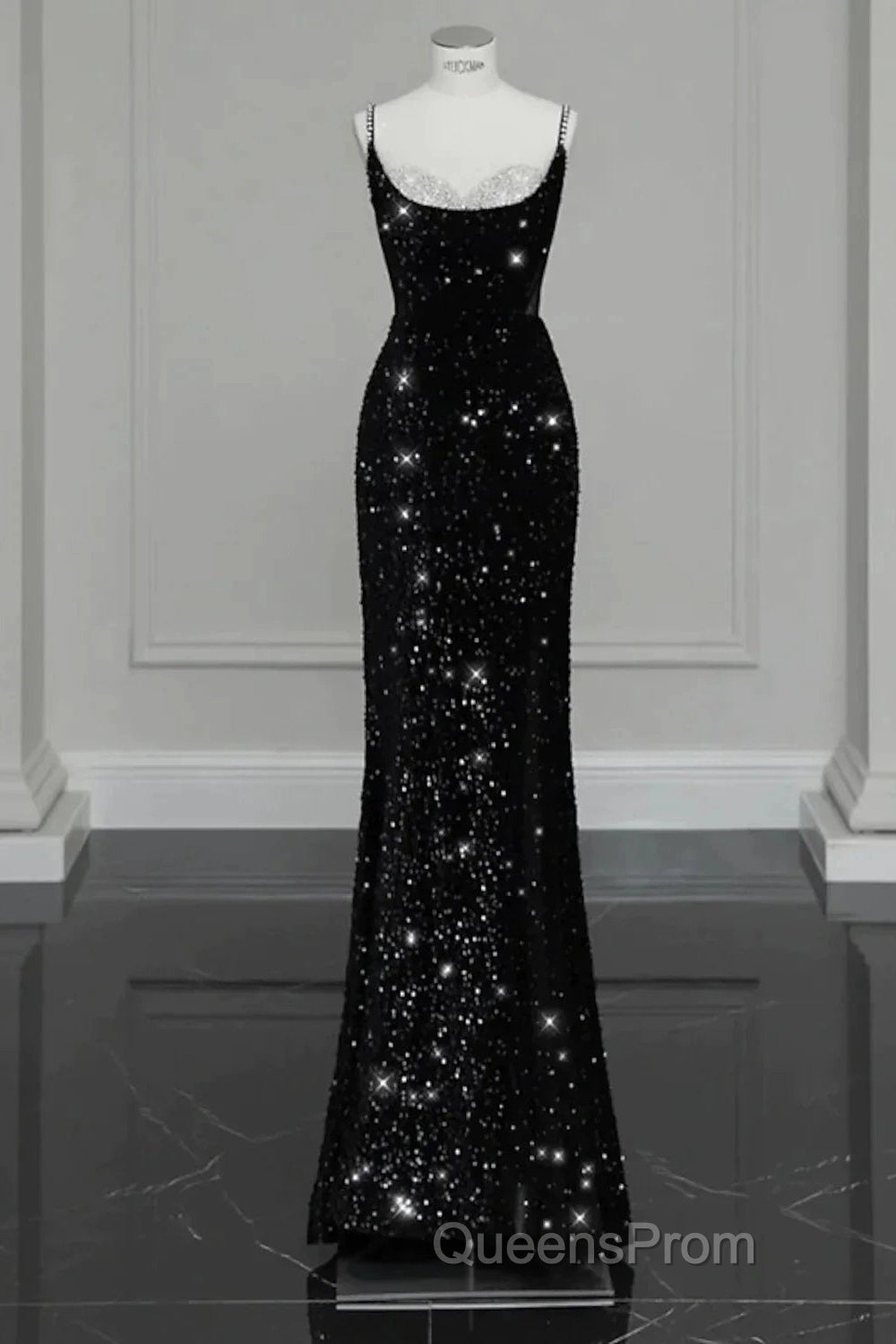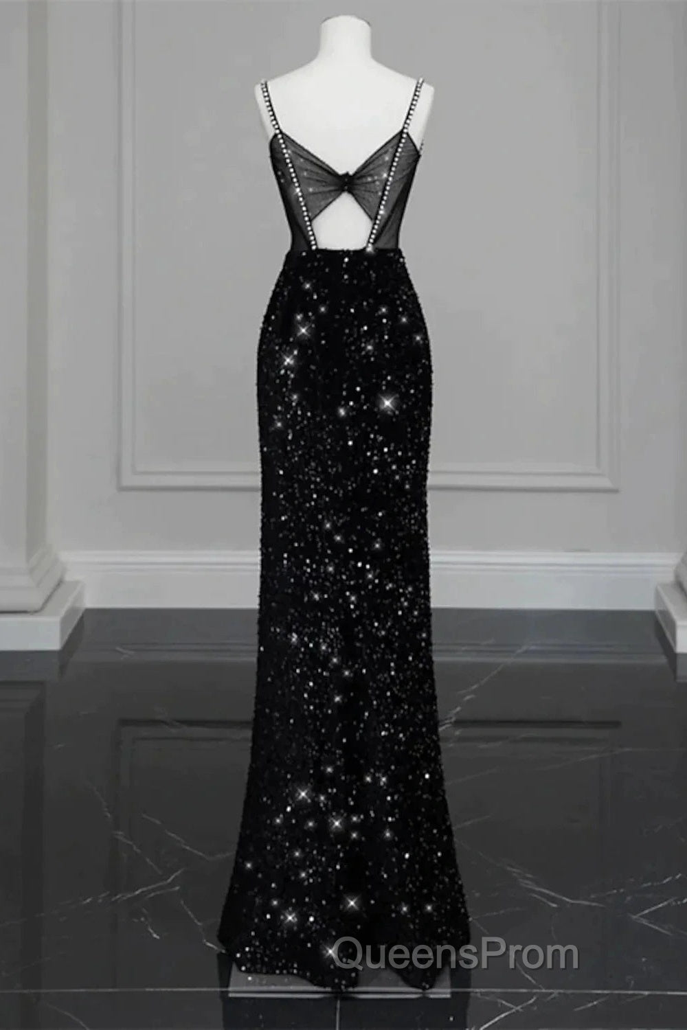 Evening Gown Sexy Dress Formal Floor Length Sleeveless Strap Sequined With Bow(S) Crystals