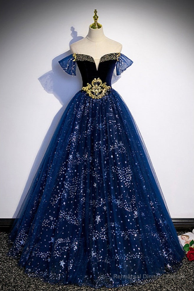 Fantasy Blue Ballgown Tulle Prom Dress with Bling