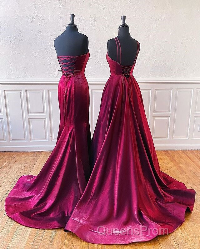 Floor Length Long Satin Burgundy Evening Prom Dress With Split