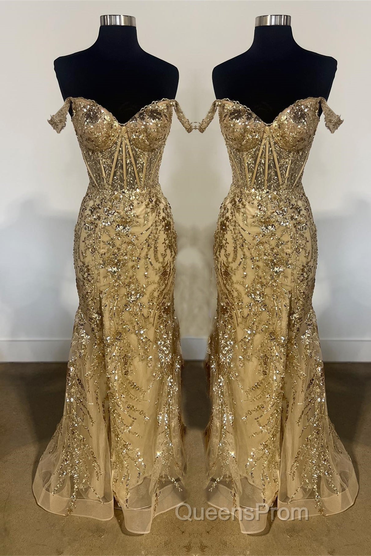 Fuchsia Off-Shoulder Sequined Floral Mermaid Long Evening Prom Dress with Slit