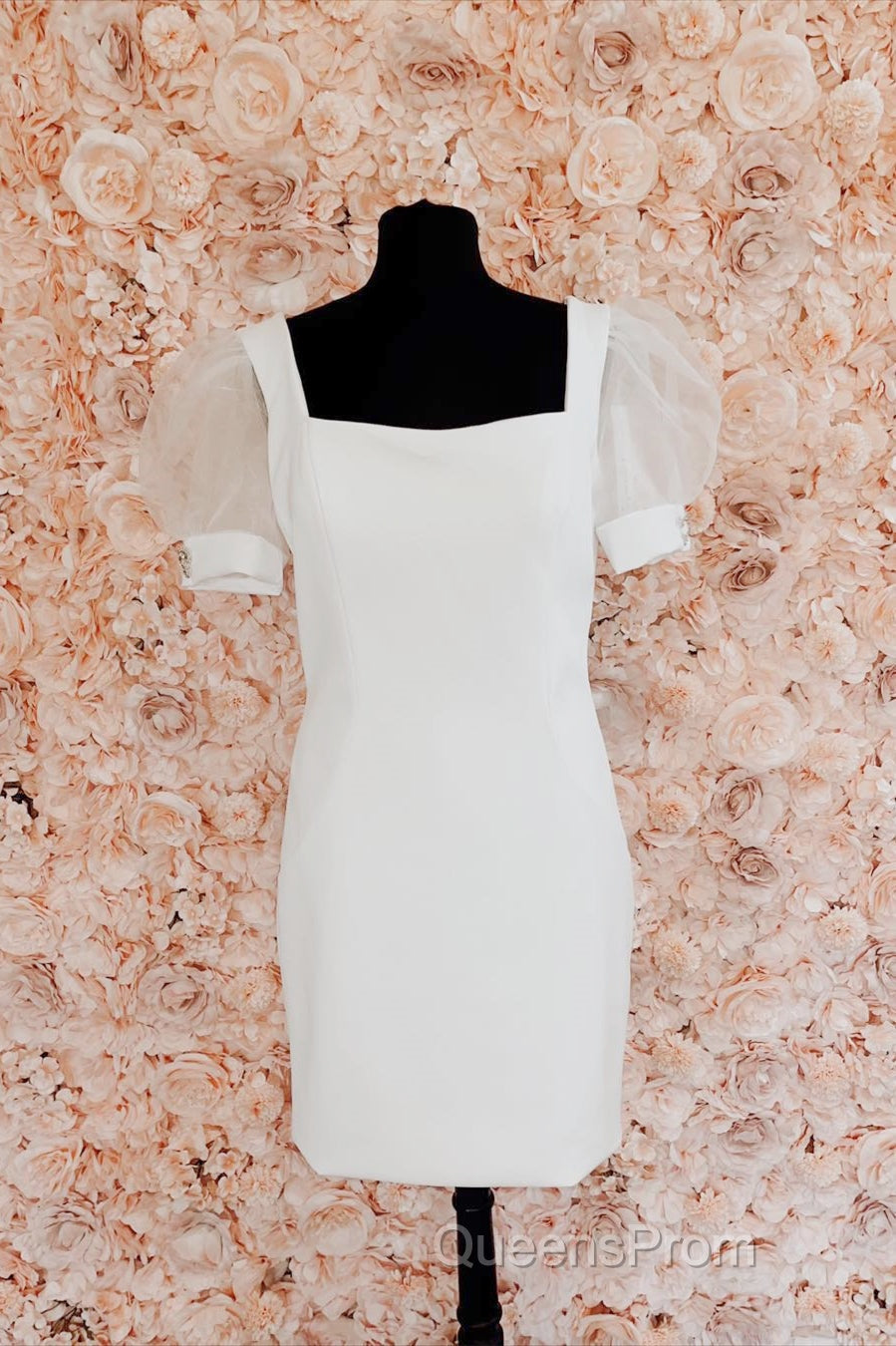 Fuchsia Puff Sleeves Square Neck Sheath Homecoming Dress