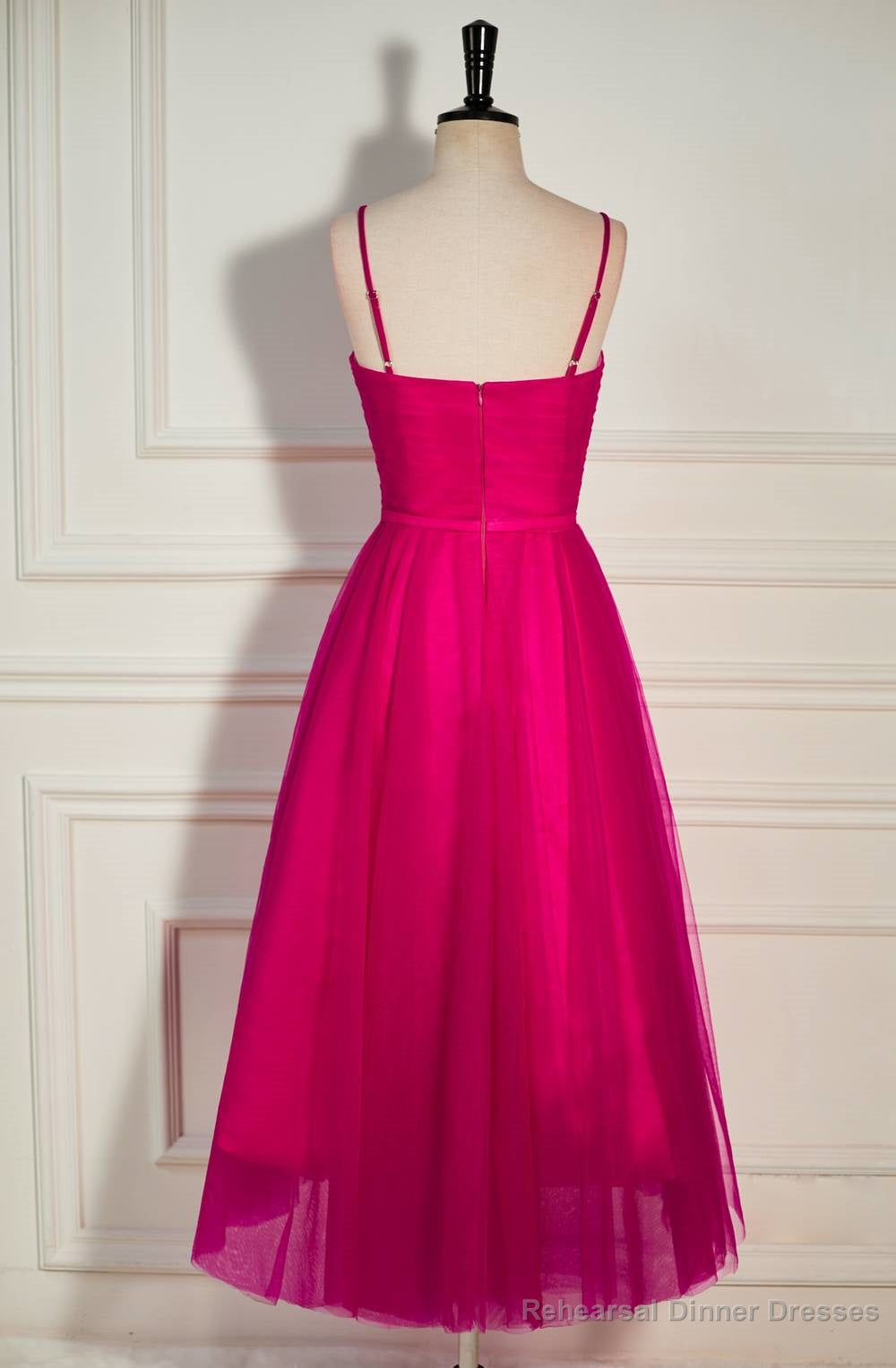 Fuchsia Straps A-line Tulle Tea-Length Prom Dress