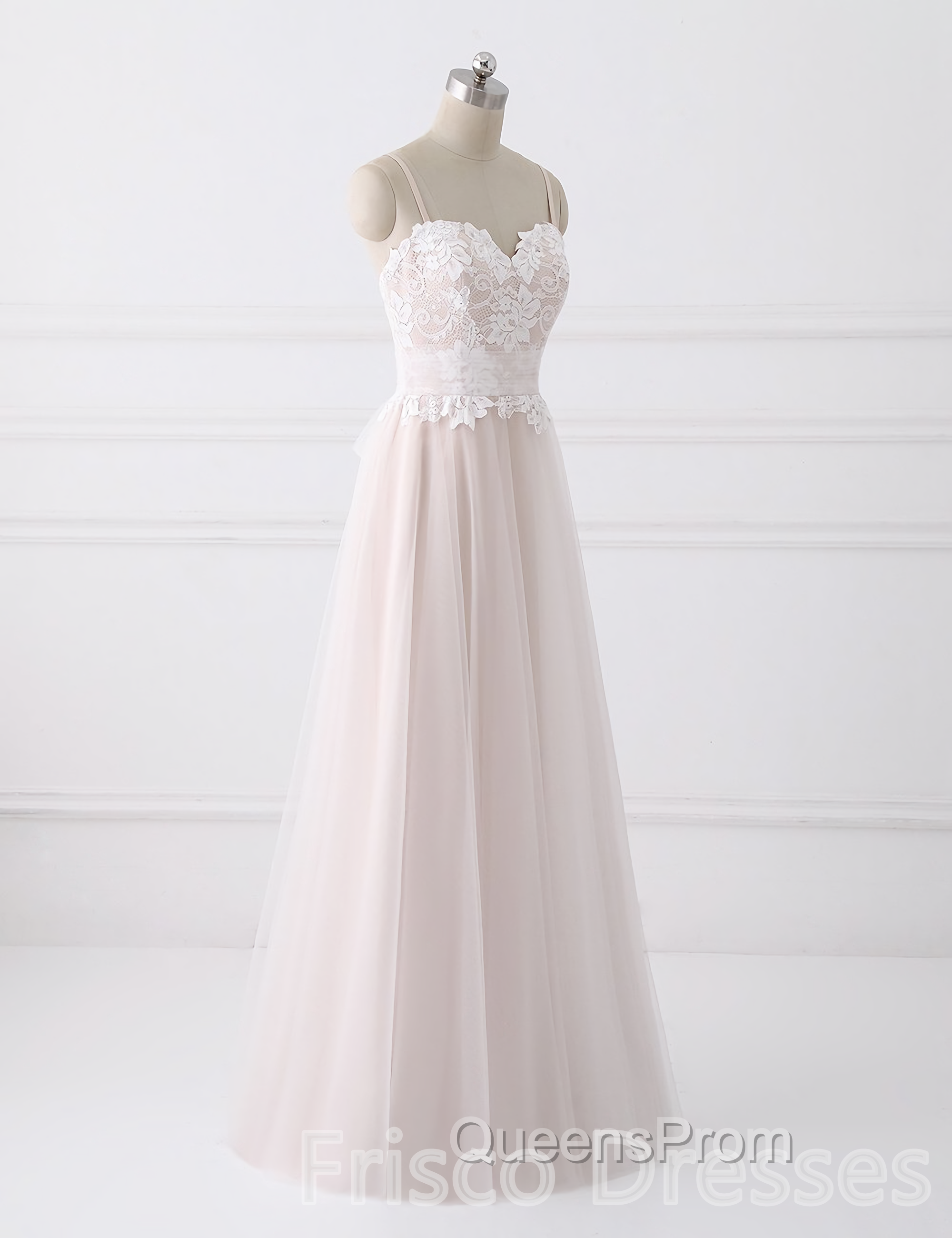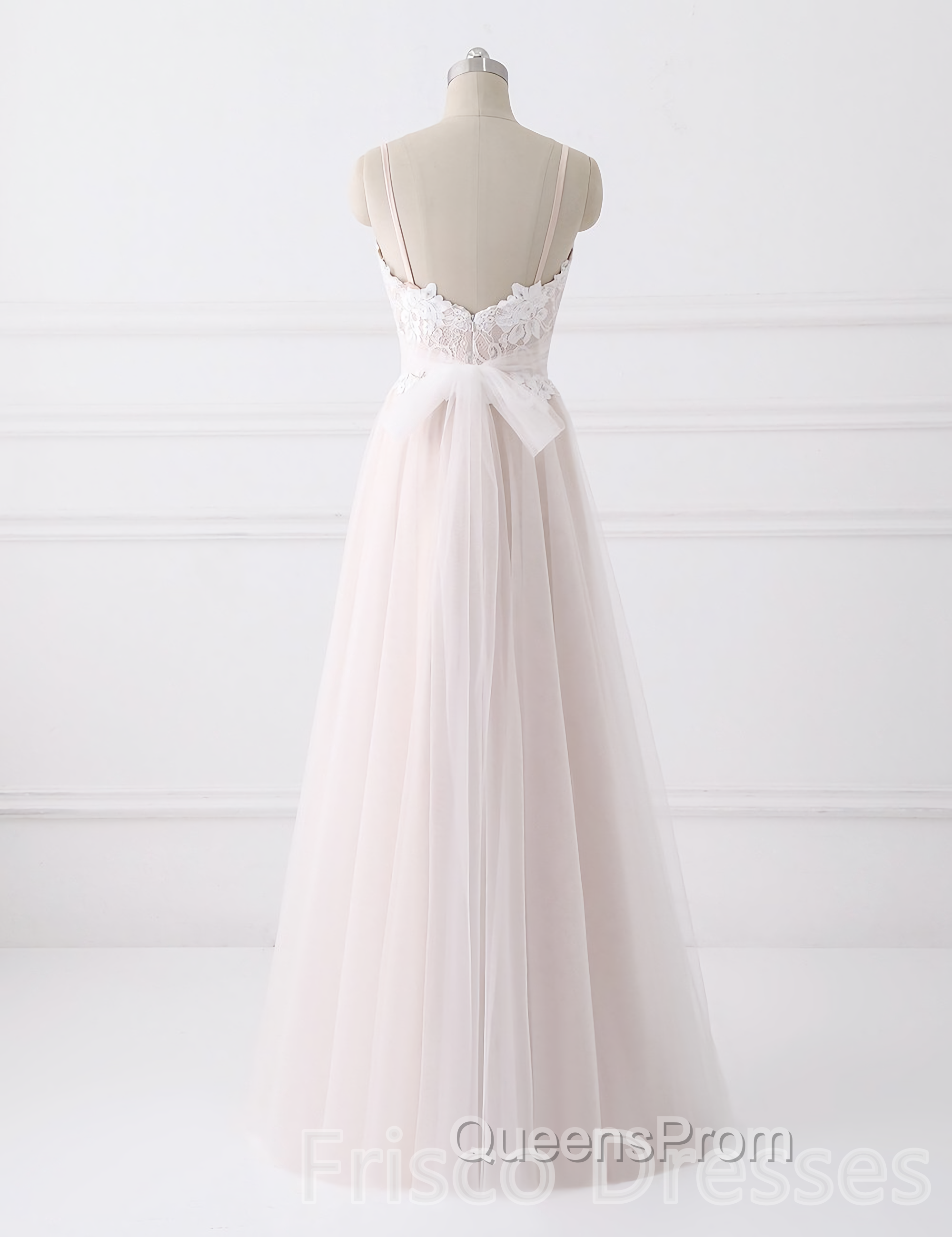 Girly Spaghetti Straps Long A-line Floor Length Wedding Dress
