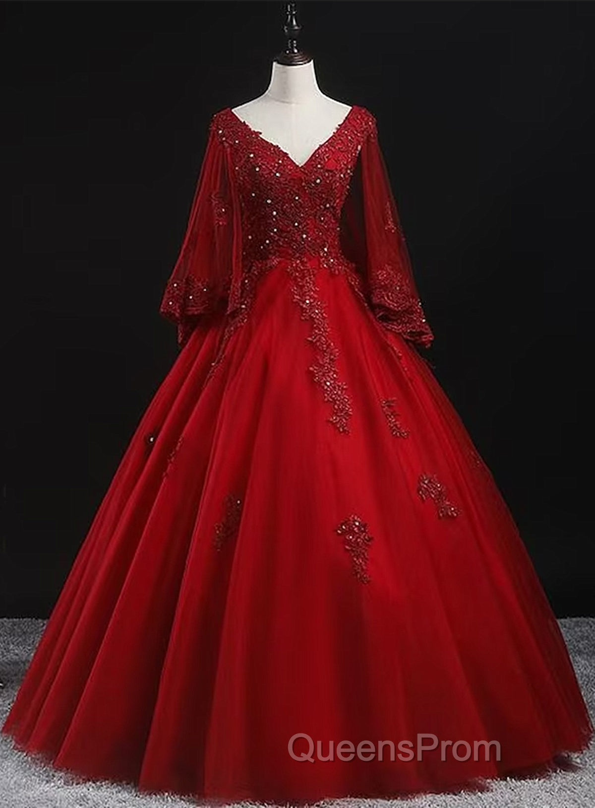 Glam Tulle With Lace Applique Ball Gown Sweet 16 Dress, Beaded Evening Prom Dress Evening Dress