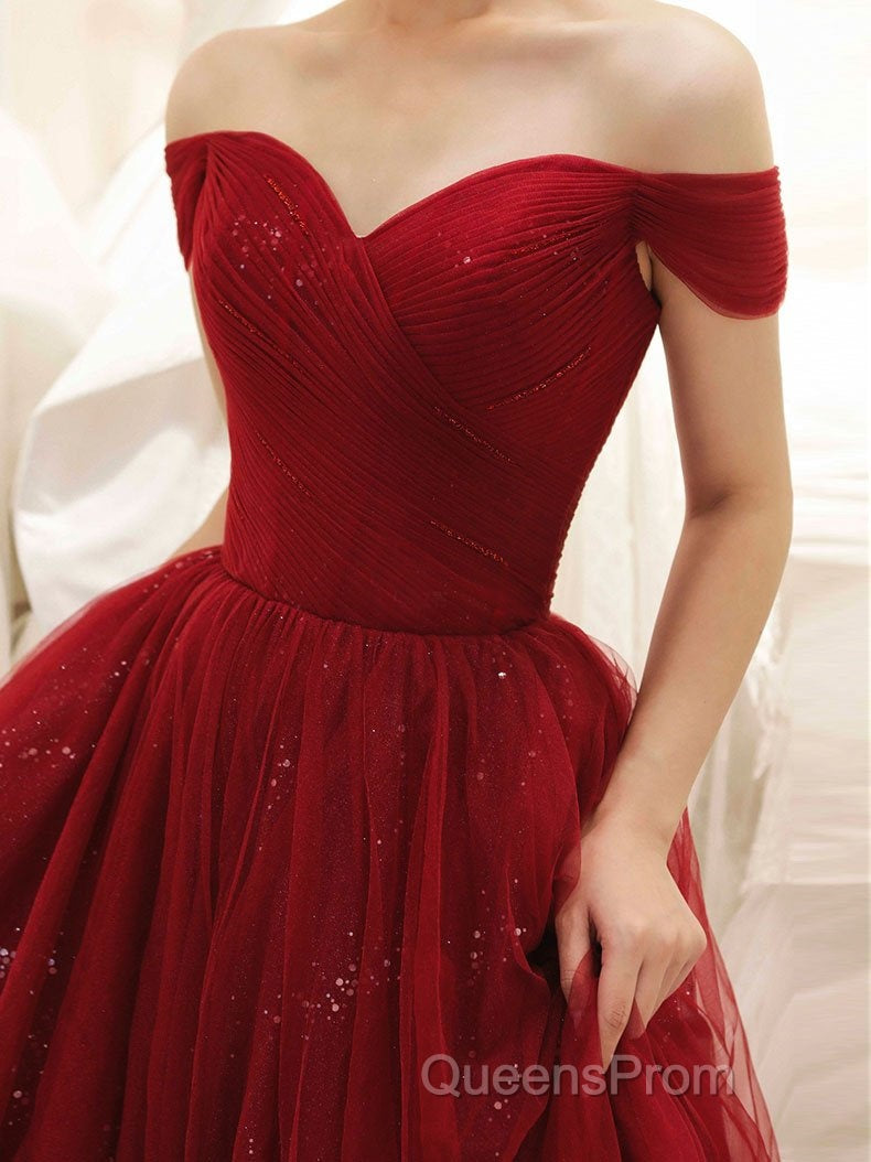 Glam Wine Red Sweetheart Tulle Shiny Long Evening Prom Dress Party Dress, Wine Red Formal Dress
