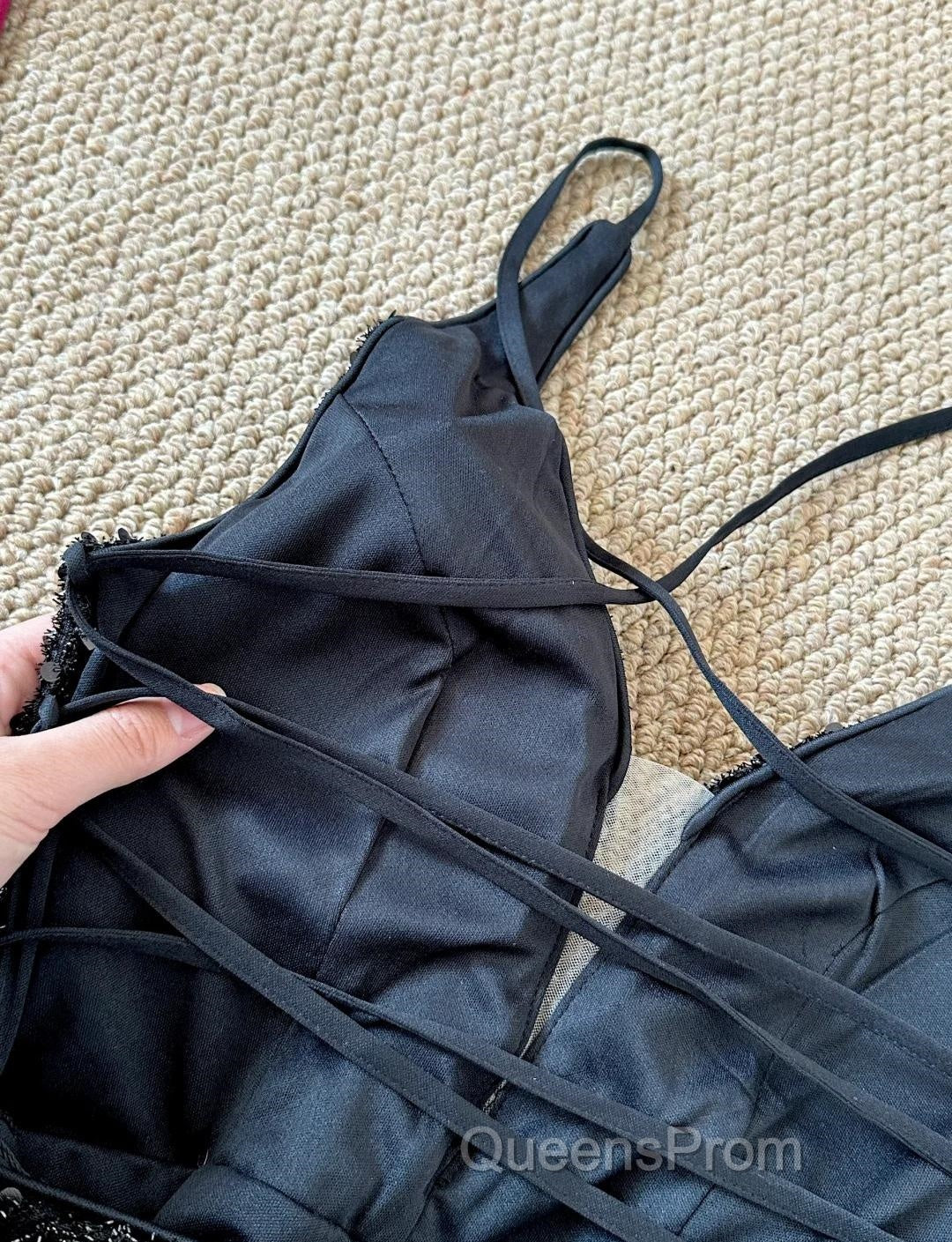 Gorgeous Black Sequin Mermaid Spaghetti Strap Vling Long Evening Prom Dress Backless Formal Evening Dress