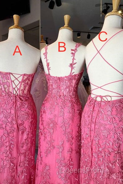 Gorgeous Hot Pink Lace Appliques Long Formal Dress