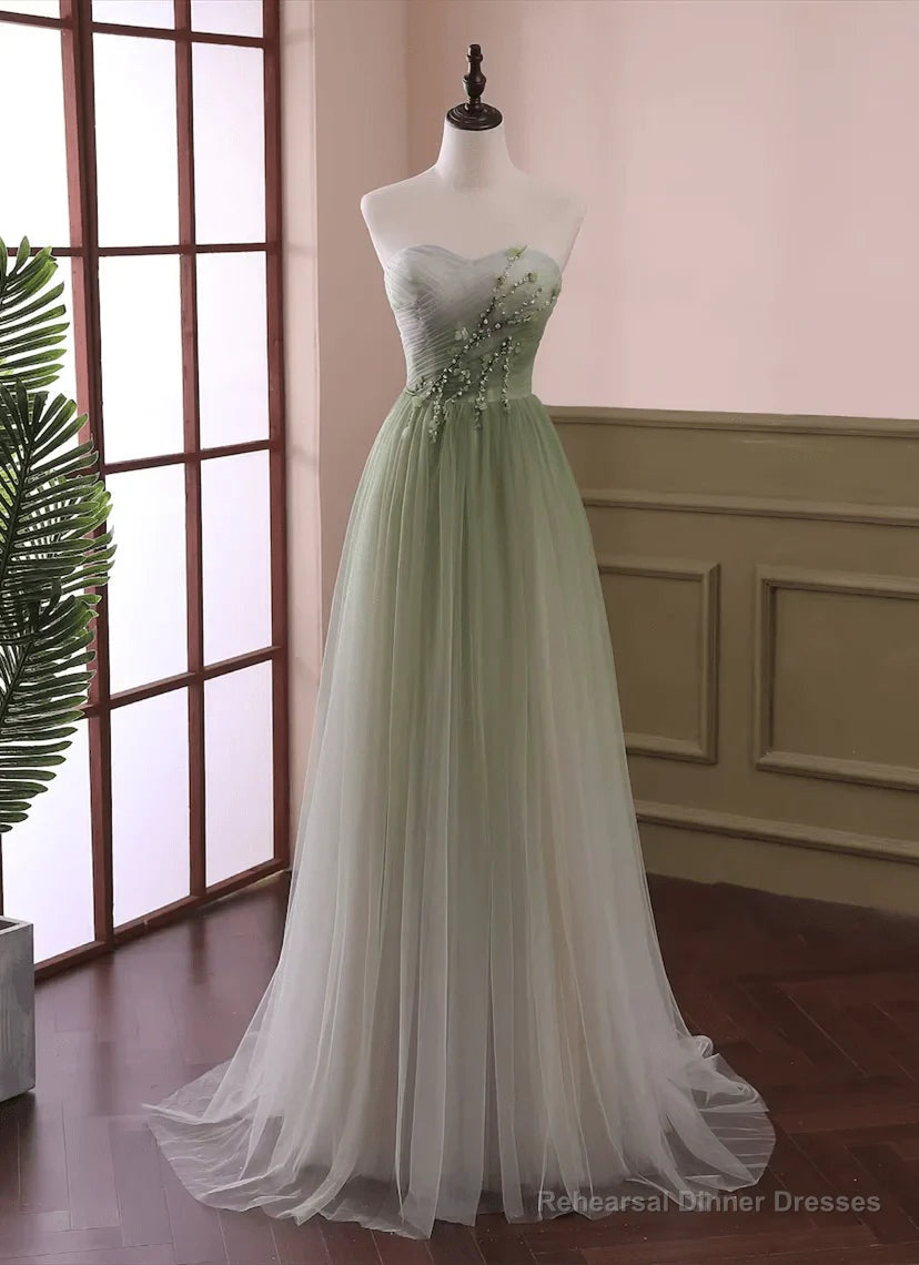 Gradient Light Green Beaded Tulle A-line Party Dress Long Junior Prom Dress prom dresses shops