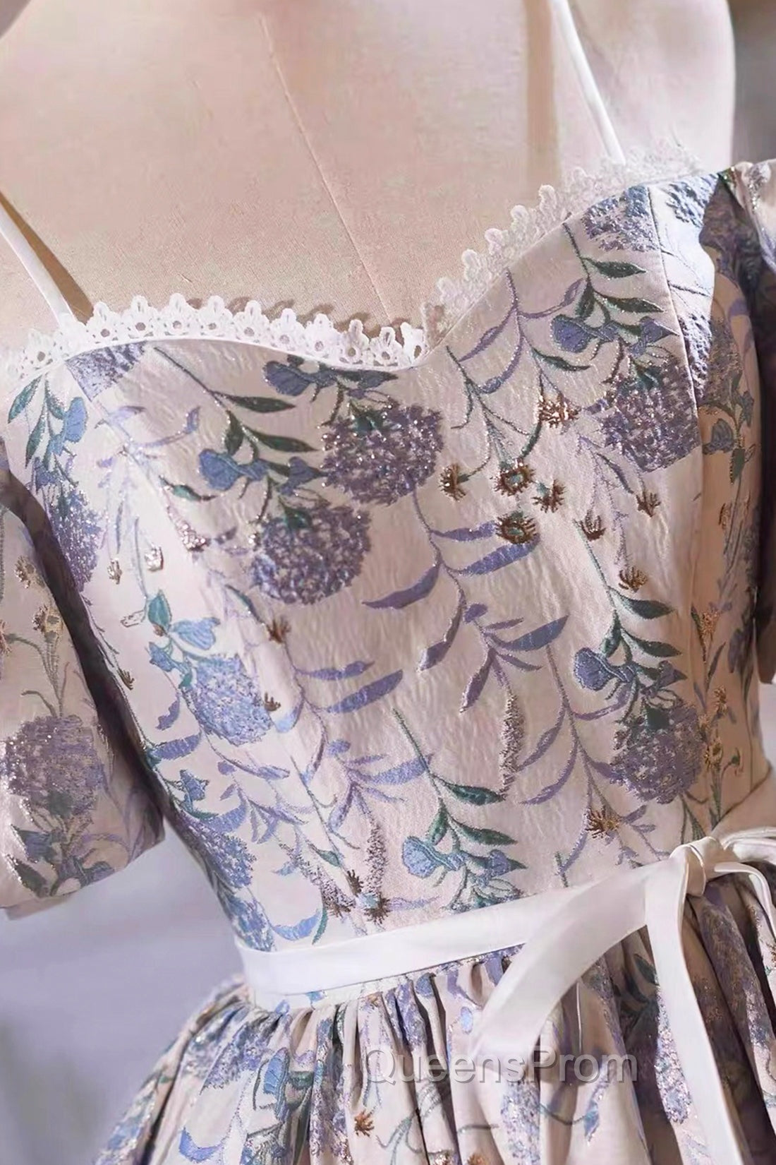 Gray Print Short Evening Prom Dress Dress, Lovely Spaghetti Strap Evening Party Dress