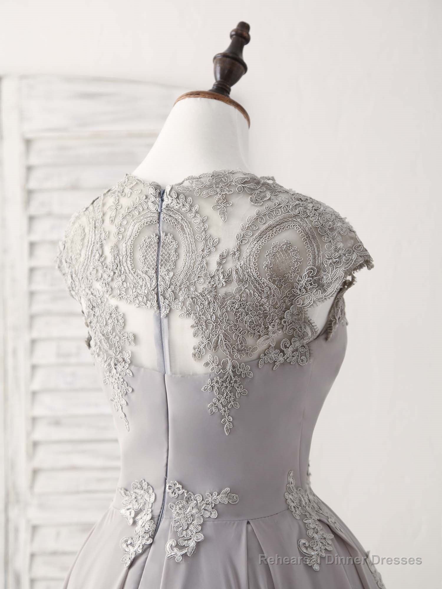 Gray Round Neck Lace Short Prom Dress Gray Bridesmaid Dress