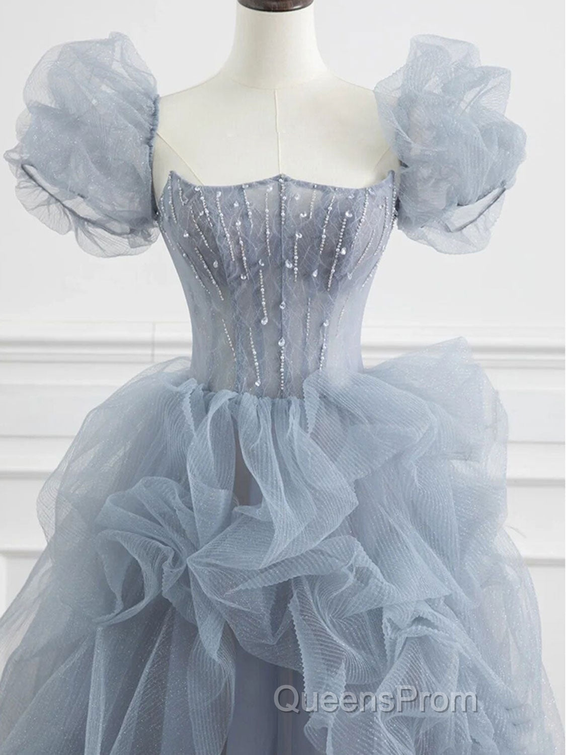 Gray tulle beads long Evening Prom Dress, gray tulle formal Dress