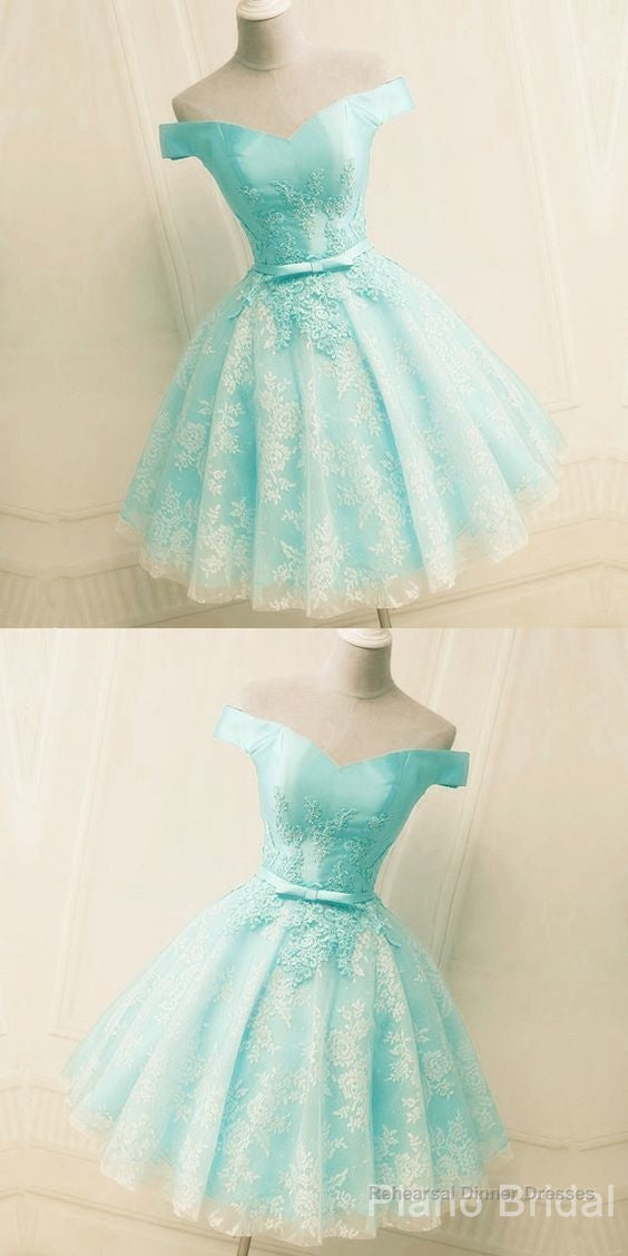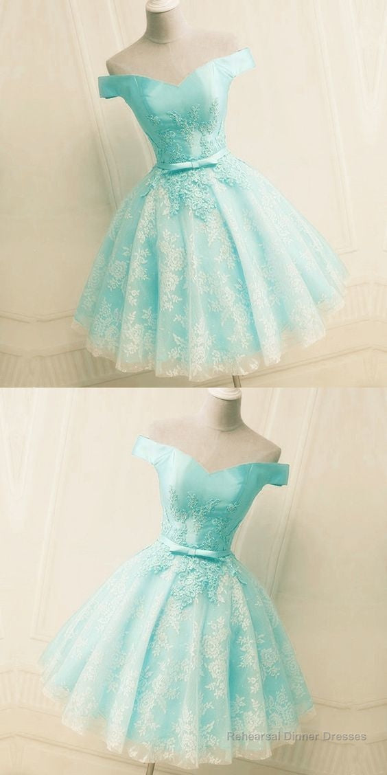 Green Off The Shoulder Appliques Short Homecoming Dress
