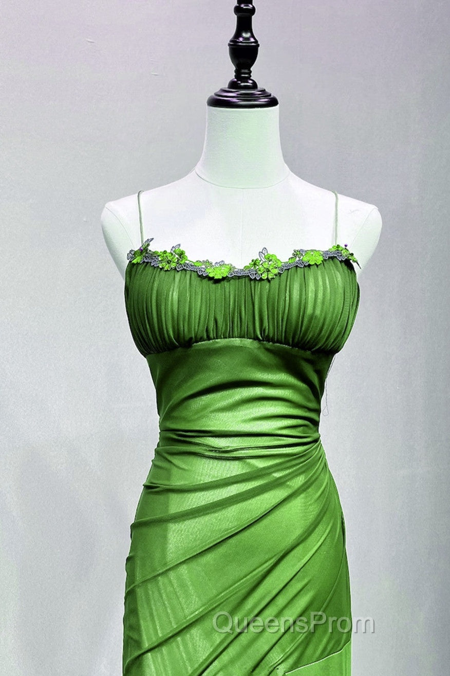 Green Straps Lace-Up Formal Dress Evening Dress, Green Spandex Evening Prom Dress
